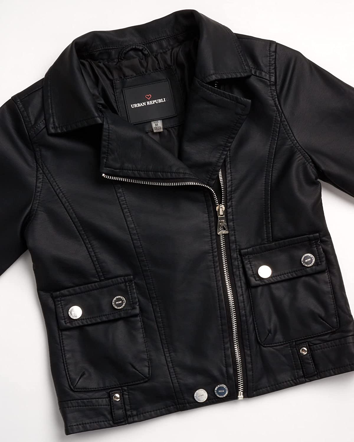 • OFFICIALLY LICENSED URBAN REPUBLIC: Girls' Faux Leather Moto Jacket; Inspired by a new upcoming generation, fast-paced culture, and diverse self-expression