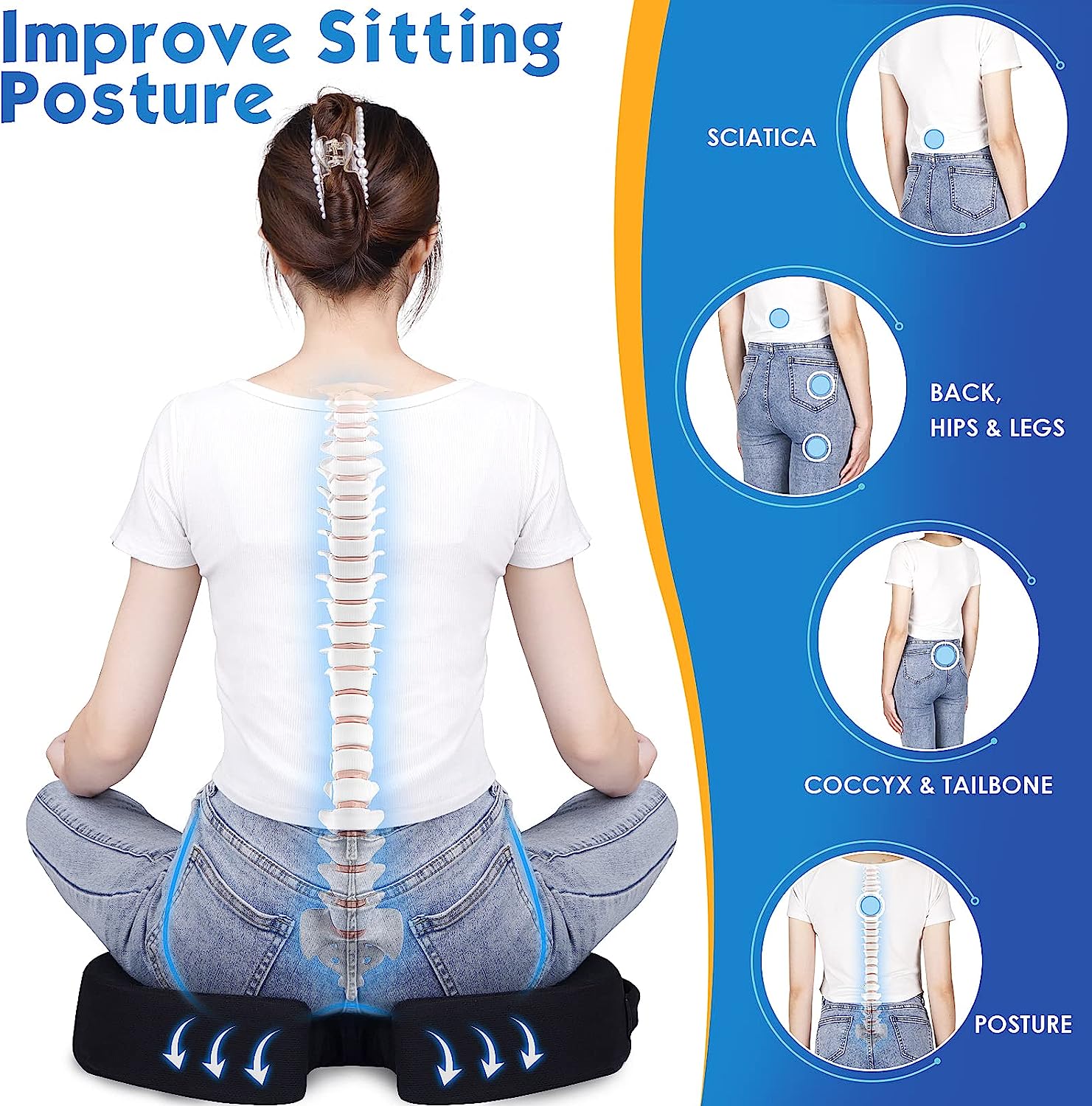 - 【Pain Relief Cushion】Place on any chair to provide extra support to your body to offload pressure on your spine, back, and sciatic nerve. Effectively relieve back, coccyx, sciatica, tailbone pain.