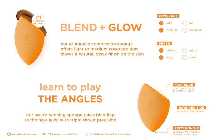 • The Real Techniques Miracle Complexion Sponge creates an even, natural glow to help dull, tired skin