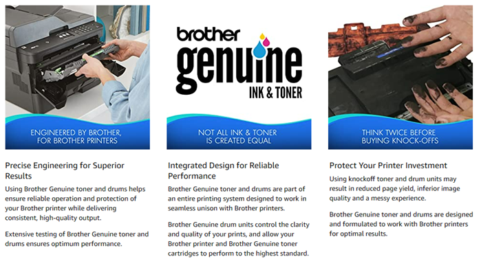 Brother is dedicated to keeping the environment safe and produces our replacement products in ISO-certified factories. We offer several environmentally-responsible ways for our customers to dispose of their Brother branded products once they have served their purpose. Brother Genuine replacement supplies are backed by Brother’s ‘At Your Side’ Warranty and customers enjoy lifetime tech support for the life of their printers. The Brother DR820 Drum Unit is for use with DCPL5500DN, DCPL5600DN, DCPL5650DN, HLL5000D, HLL5100DN, HLL5200DW, HLL5200DWT, HLL6200DW, HLL6200DWT, HLL6300DW, MFCL5700DW, MFCL5800DW, MFCL5850DW, MFCL5900DW, MFCL6700DW, MFCL6800DW.