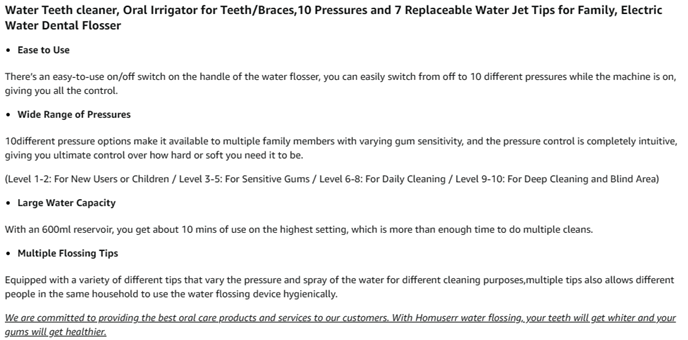 - 【Free Replacement for 12 Months】Water Dental Floss We promise to manufacture dental floss in accordance with strict quality standards to provide our customers with a better experience. It is recommended by dentists and doctors for oral hygiene and home care. If you have any leakage or non-working problems, please contact us and we will reply immediately to resolve all your concerns