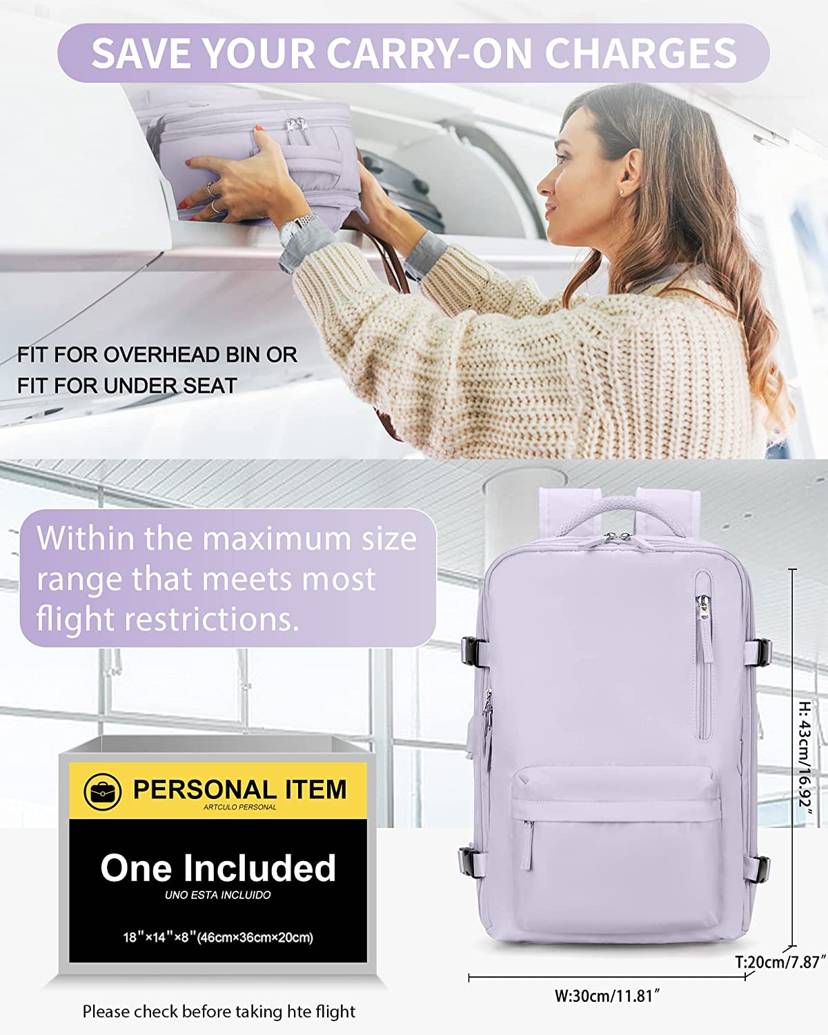 • Carry on Backpack For Women: The size of backpack is 11.81*7.87*16.92(inch);Travel backpack for women airline approved that can be carried in flight, it saves you a fortune on checked fees and is perfect for traveling or on business trips under the seat on the plane.