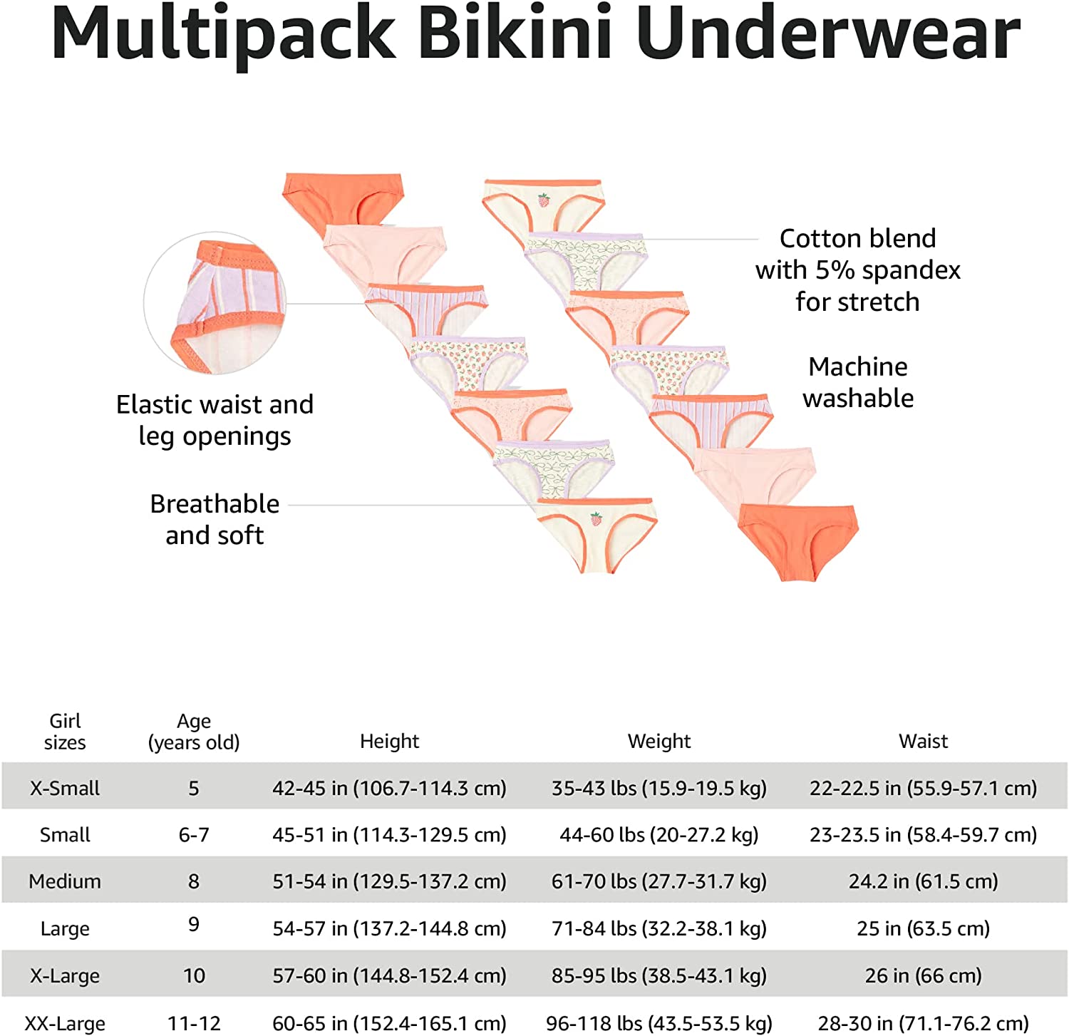 Amazon Essentials Girls' Bikini Underwear, Multipacks