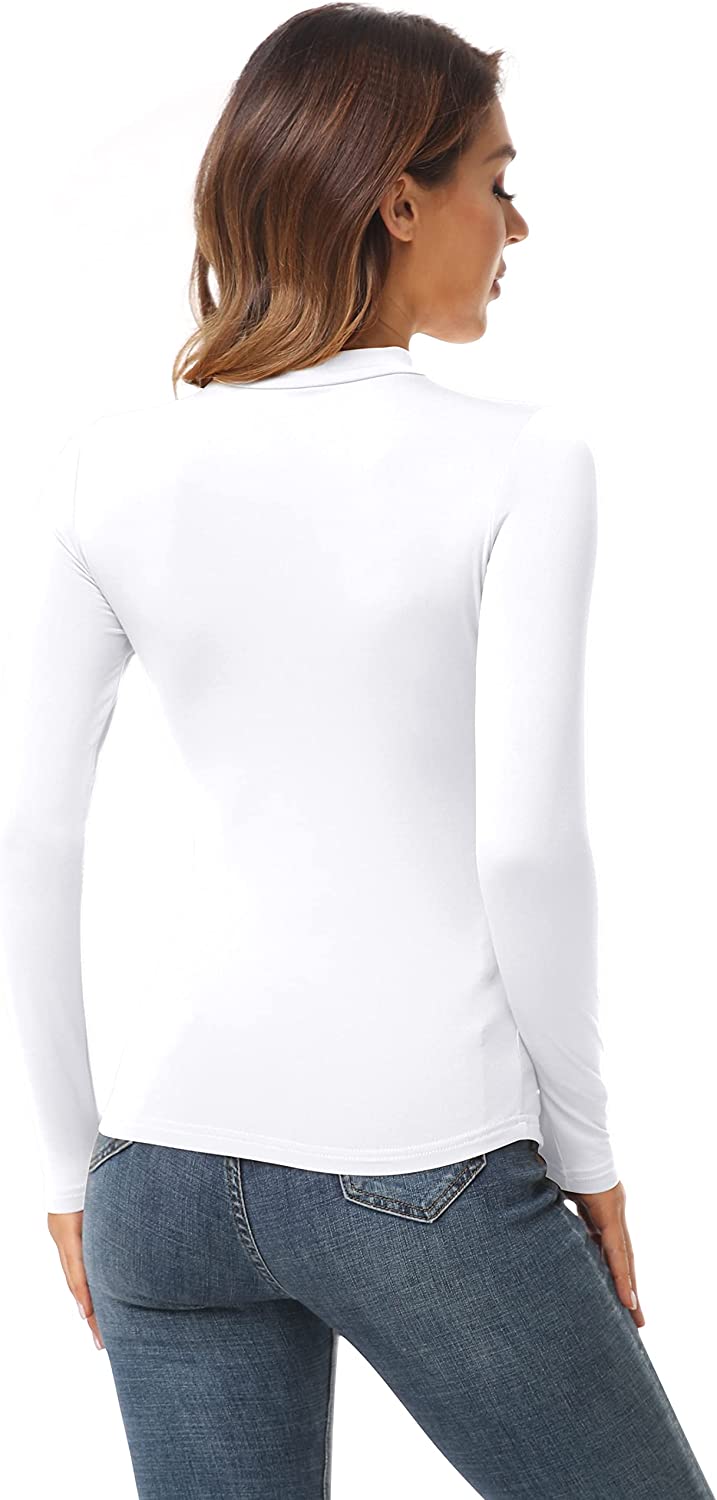 - This women's mock turtleneck t-shrit blouse, lightweight, long sleeve, snug fitting and soft for layering, works great under scrubs, under uniforms, sweaters, blazers, jackets and coats, would be a staple in your wardroble