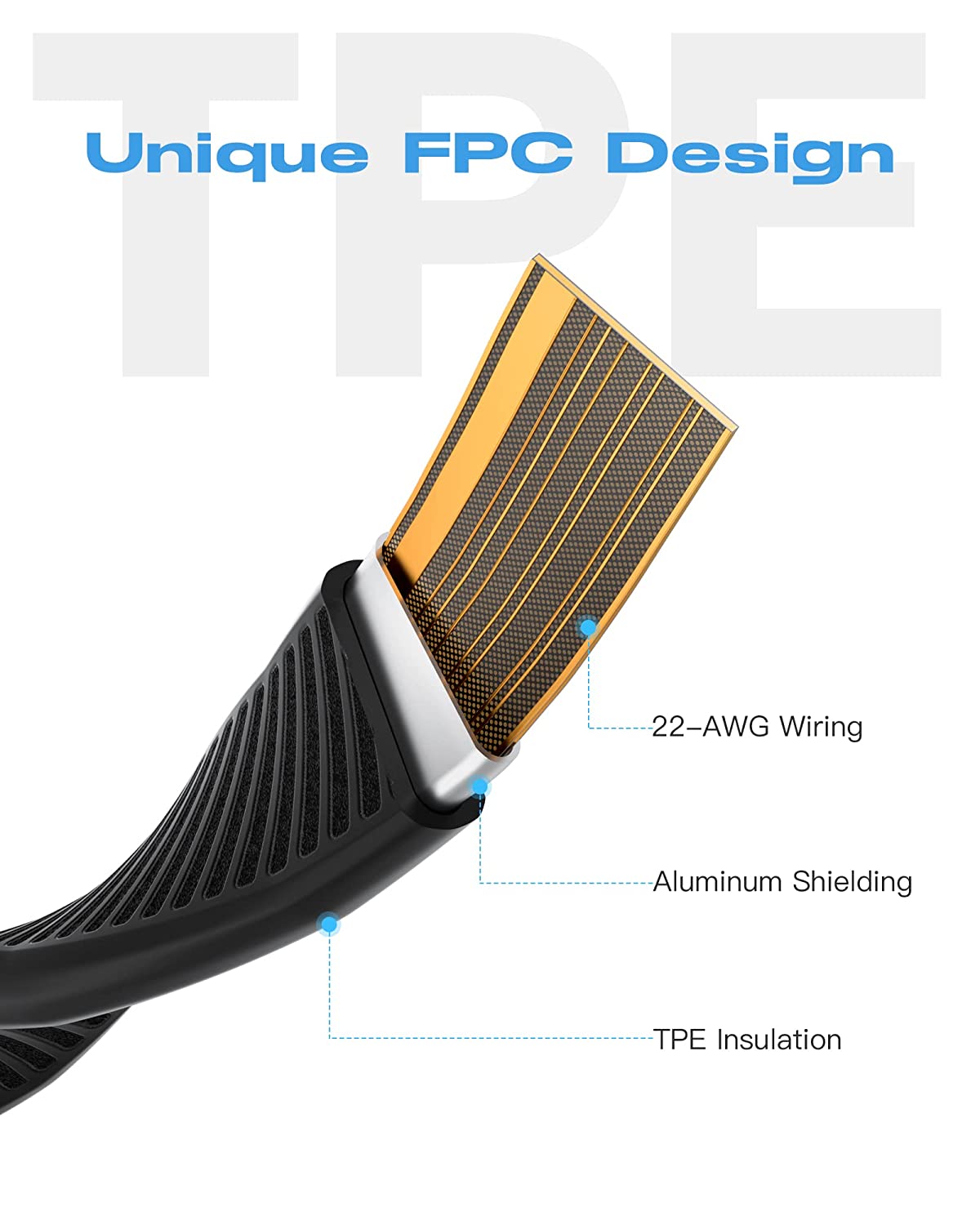 • 【Super Durability】:Tough exterior and superior construction that made with tough TPE 's flexcore jacket and unique FPC soft flat for a cable that durable and better looking than normal cables