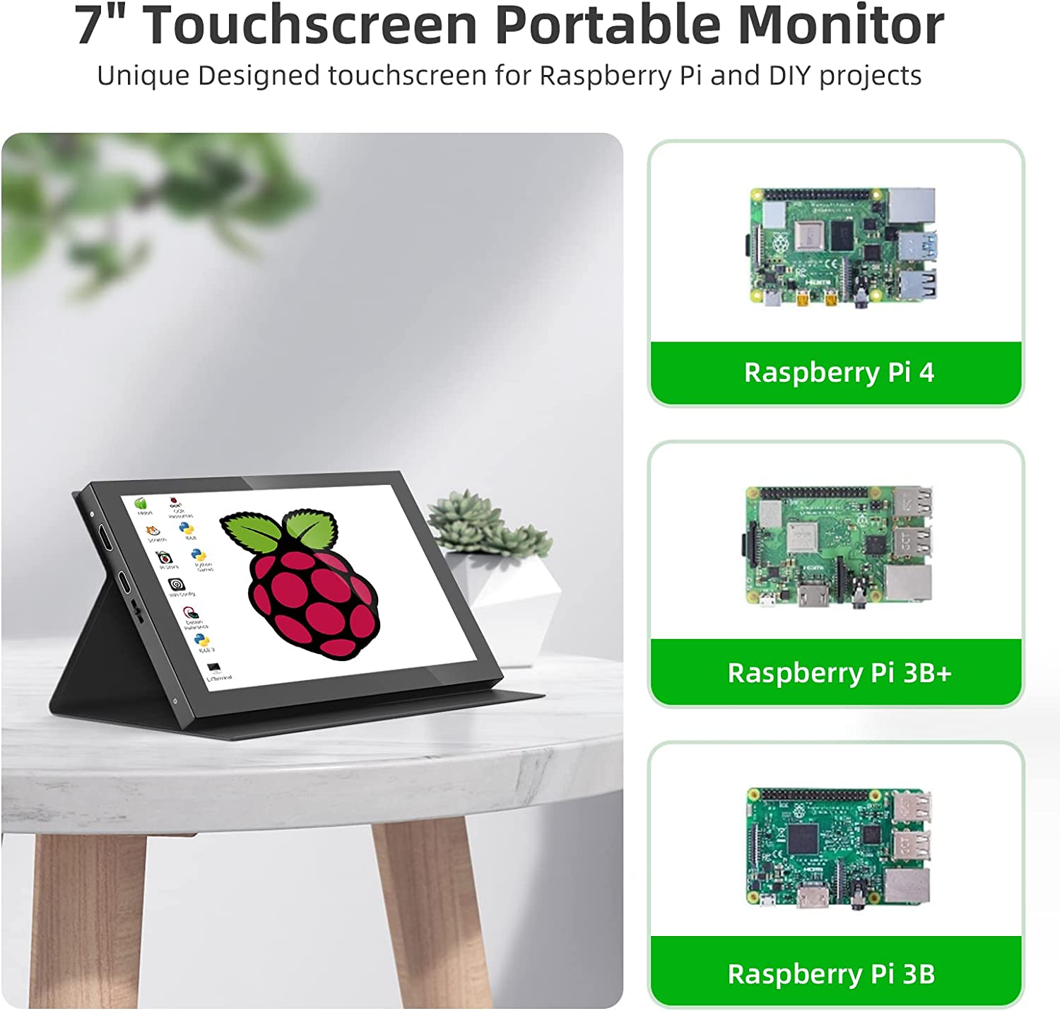 • 【7"RasPi Touchscreen Monitor】APROTII 7" RasPi screen supports almost RasPi on the market, Raspberry Pi 4/4b/3b+/3b/2b/Zero W... The monitor is plug and play, no driver need. Connect the screen to the device via the HDMI port, USB C cable powers and enables touch functionality.The monitor will output accurate image and fills the screen perfectly, no manual calibration required. You can adjust the resolution according to your needs.