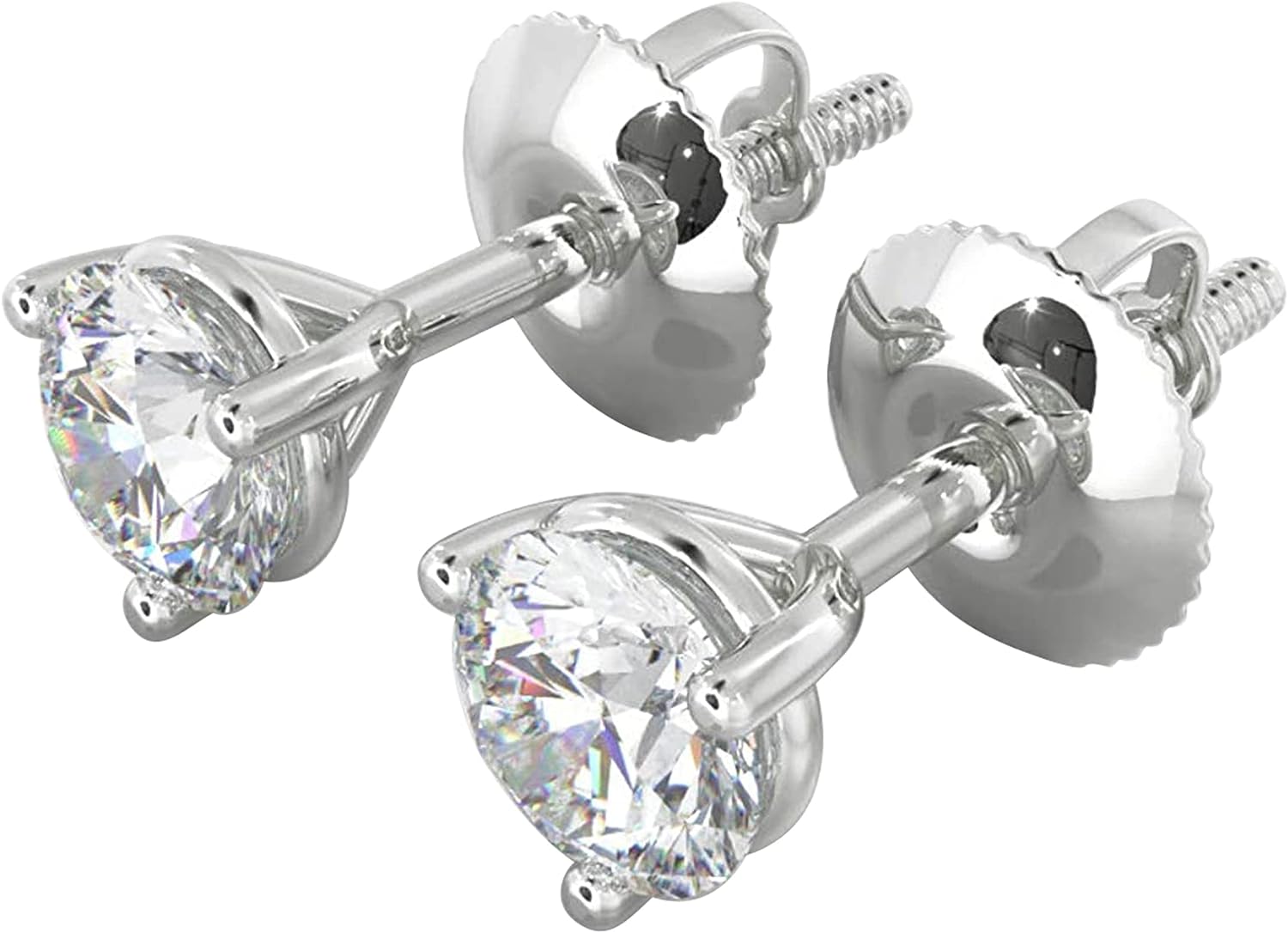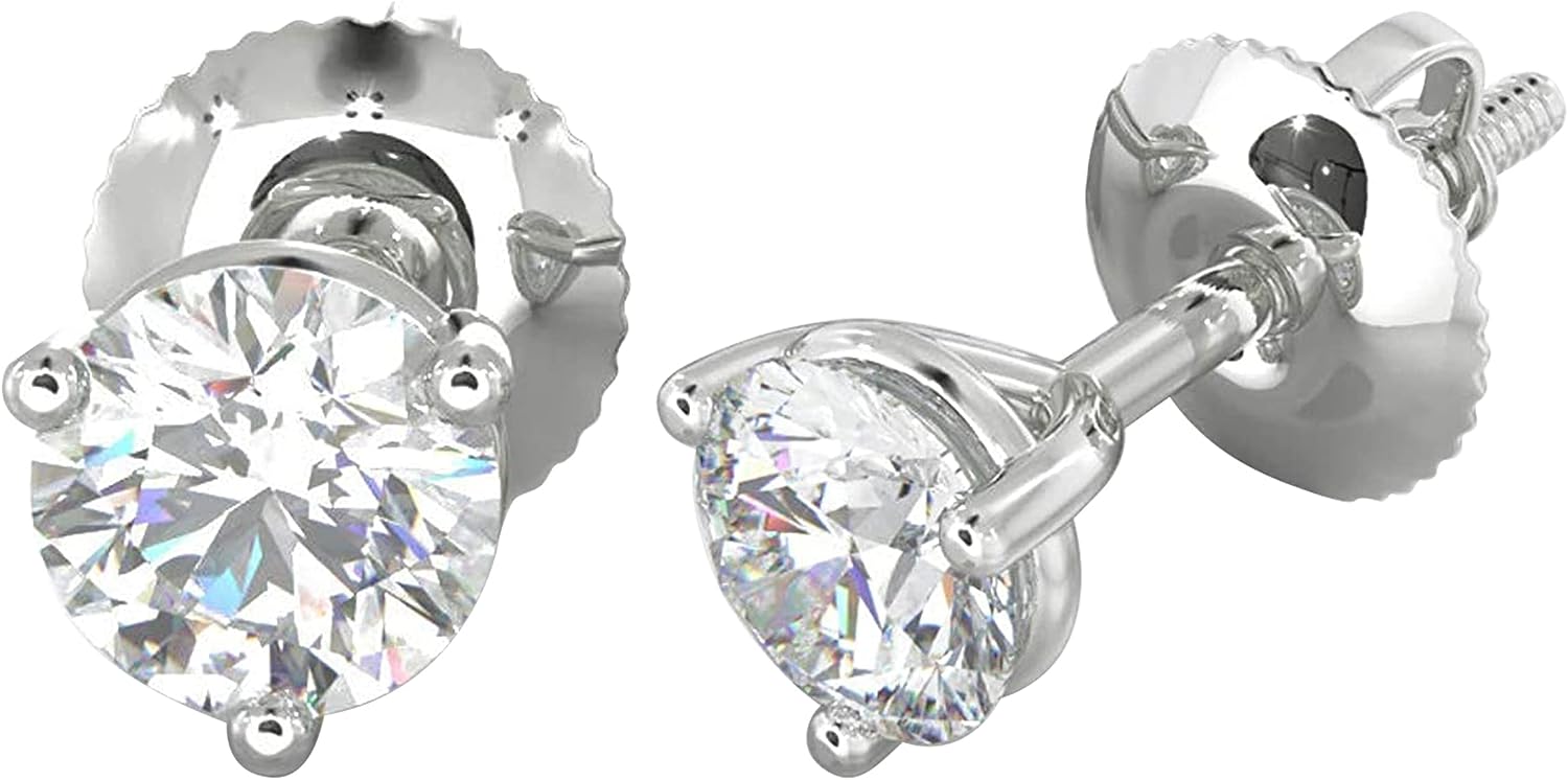 Natural Clarity I1-I2 3 Prong Martini 0.2 cttw to 2 cttw 14K Gold Real Diamond Studs Earrings with Secure Screw Back for Women and Men