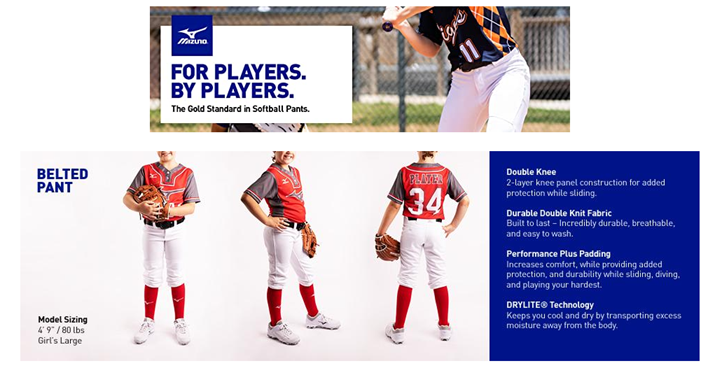 Performance at the highest level. The Mizuno Girl's Belted Softball Pant is designed exclusively for girls. Known the most durable and best fitting softball pants on the market!