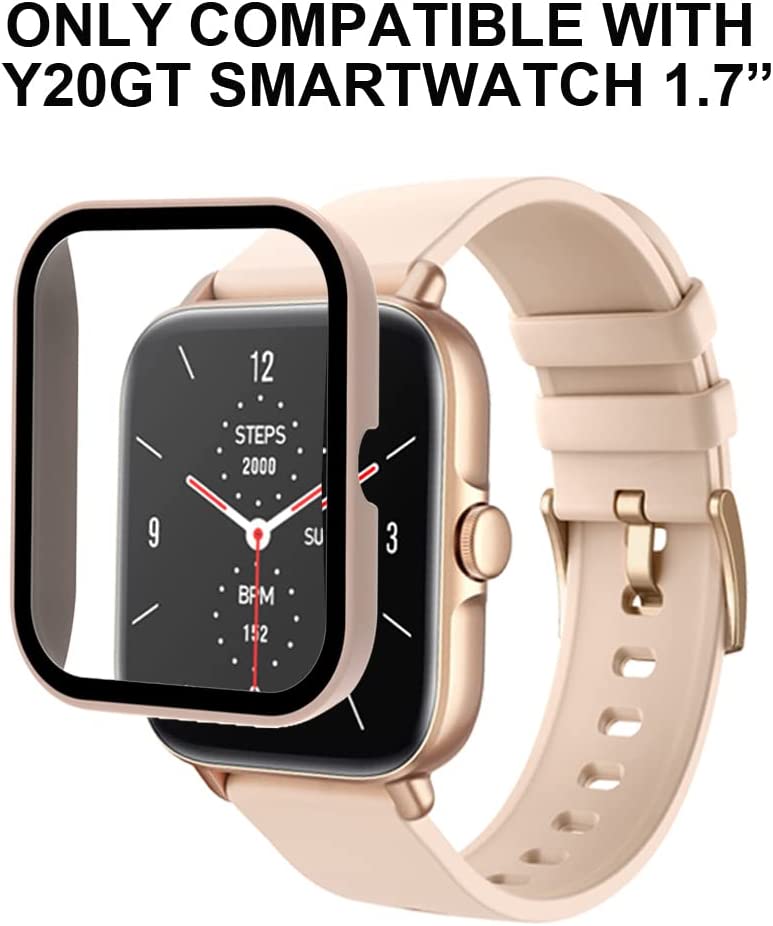 smaate Smart Watch Cases with Screen Protector for Y20GT, Compatible with WZWNEER, BANLVS, DXPICR, Bctemno Y20GT 1.7” Smartwatch, Hard PC Case with Tempered Glass, Protecting Watch Body & Screen