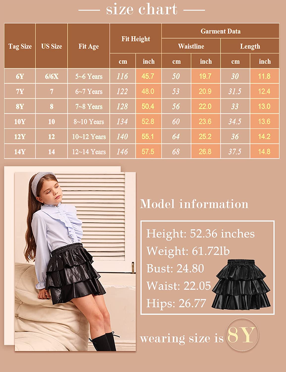 • Material:The girls skirts is made of 90%Polyester,10%Elastane, the fabric is soft and breathable, cute and fashionable.