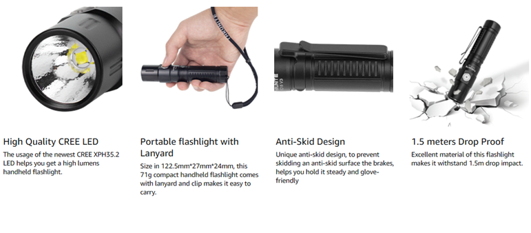 Special Feature‎High Power, Adjustable Light Modes, Impact Resistant, Non Slip Grip, Rechargeable