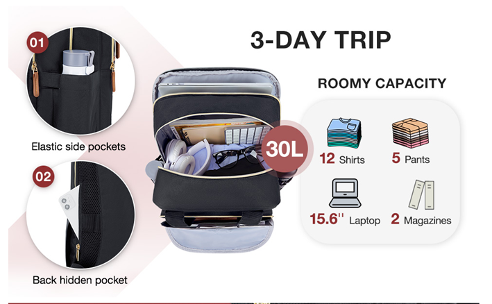 Multipurpose: Its chic look makes it as a travel backpack, laptop backpack, college backpack, casual daypack, computer backpack, bookbag. The airline approved carry-on can be fitted overhead and under-seat, is ideal for the weekend trip, business trip and travel. This roomy backpack is perfect as a gift for friends, family, women or college, for birthdays, Valentine's Day, Christmas Day