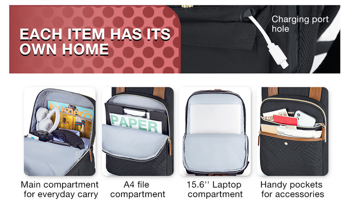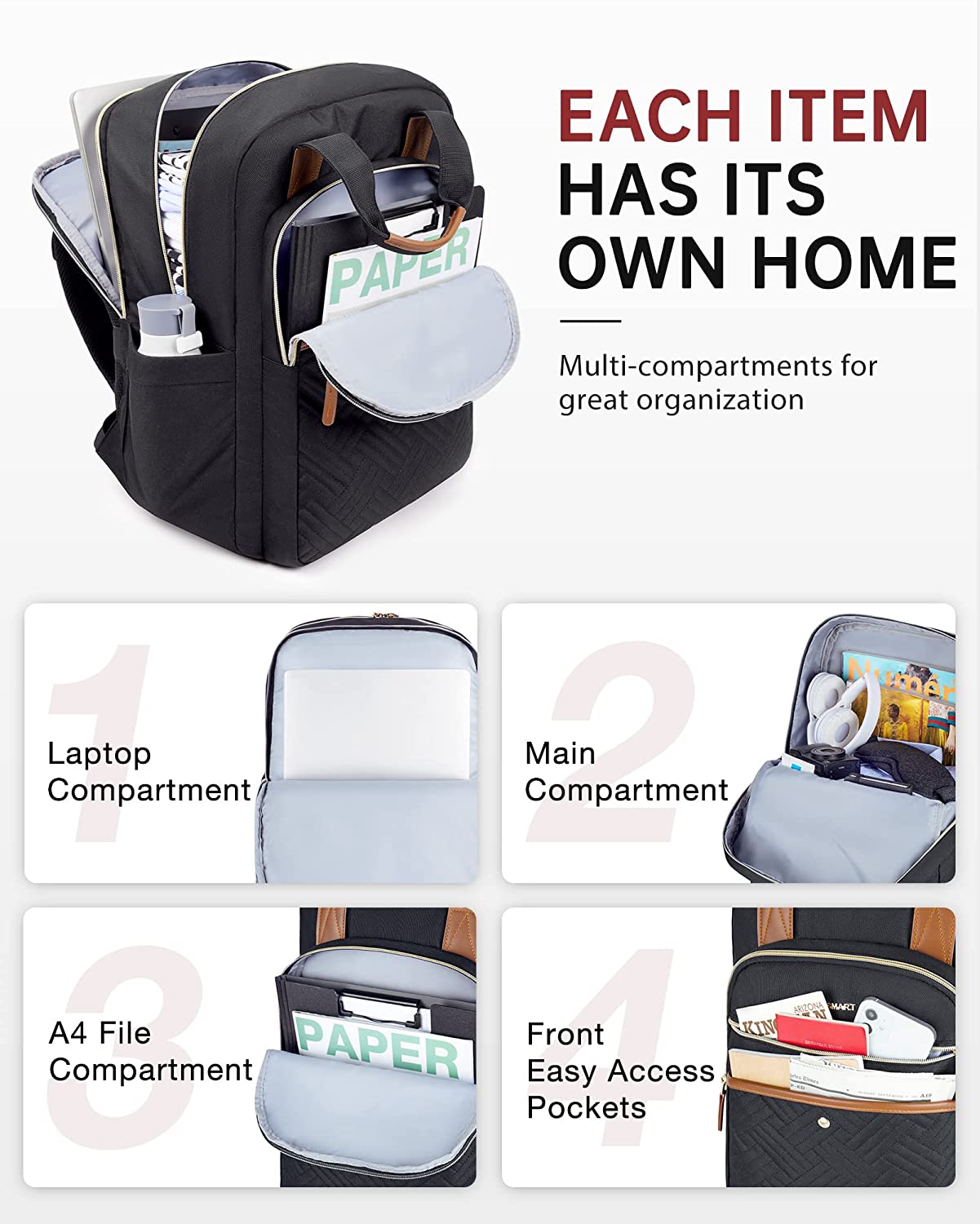 Large Capacity: The travel backpack has multiple organized pockets, up to 7 compartments. Comes with separate laptop compartments to protect a 15.6 inch laptop; a large main compartment to store daily supplies, such as A4 folders, textbooks, magazines, laptop charger, keyboard, power bank and clothes. 2 small pockets added allowing your small items in an organized manner. Dimensions 18 * 12 * 8.7 inches