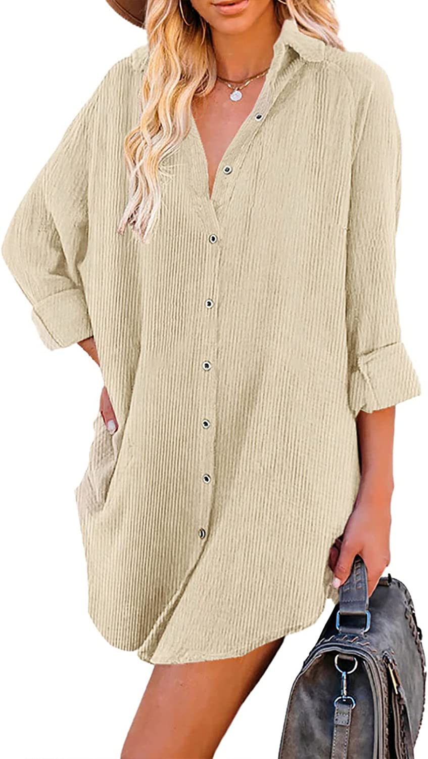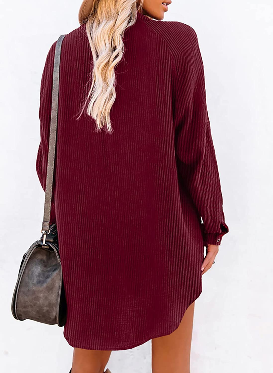 Corduroy shirt dress for every elegant Women or Girl for Spring / Fall/ Winter; Perfect for home leisure, dating, shopping, vacation, work, office and more.