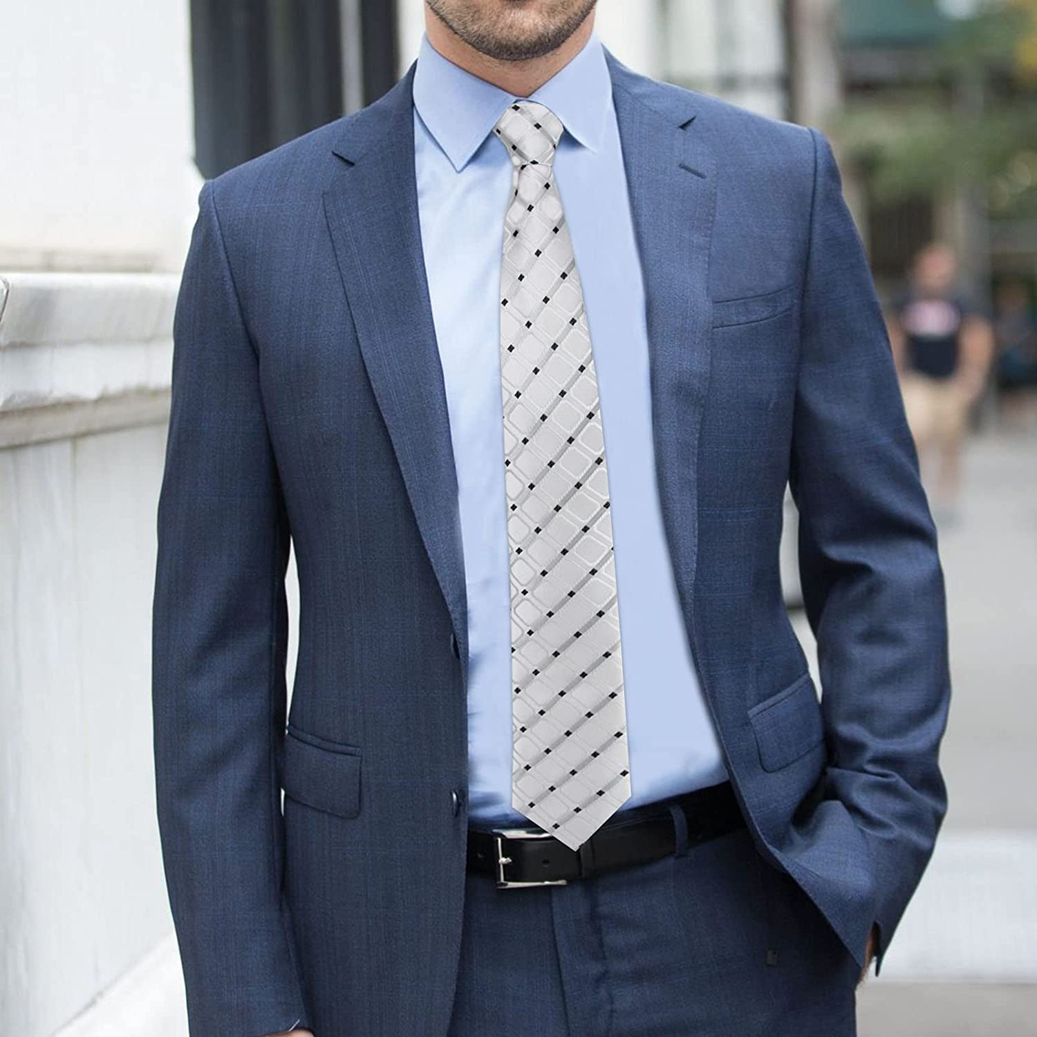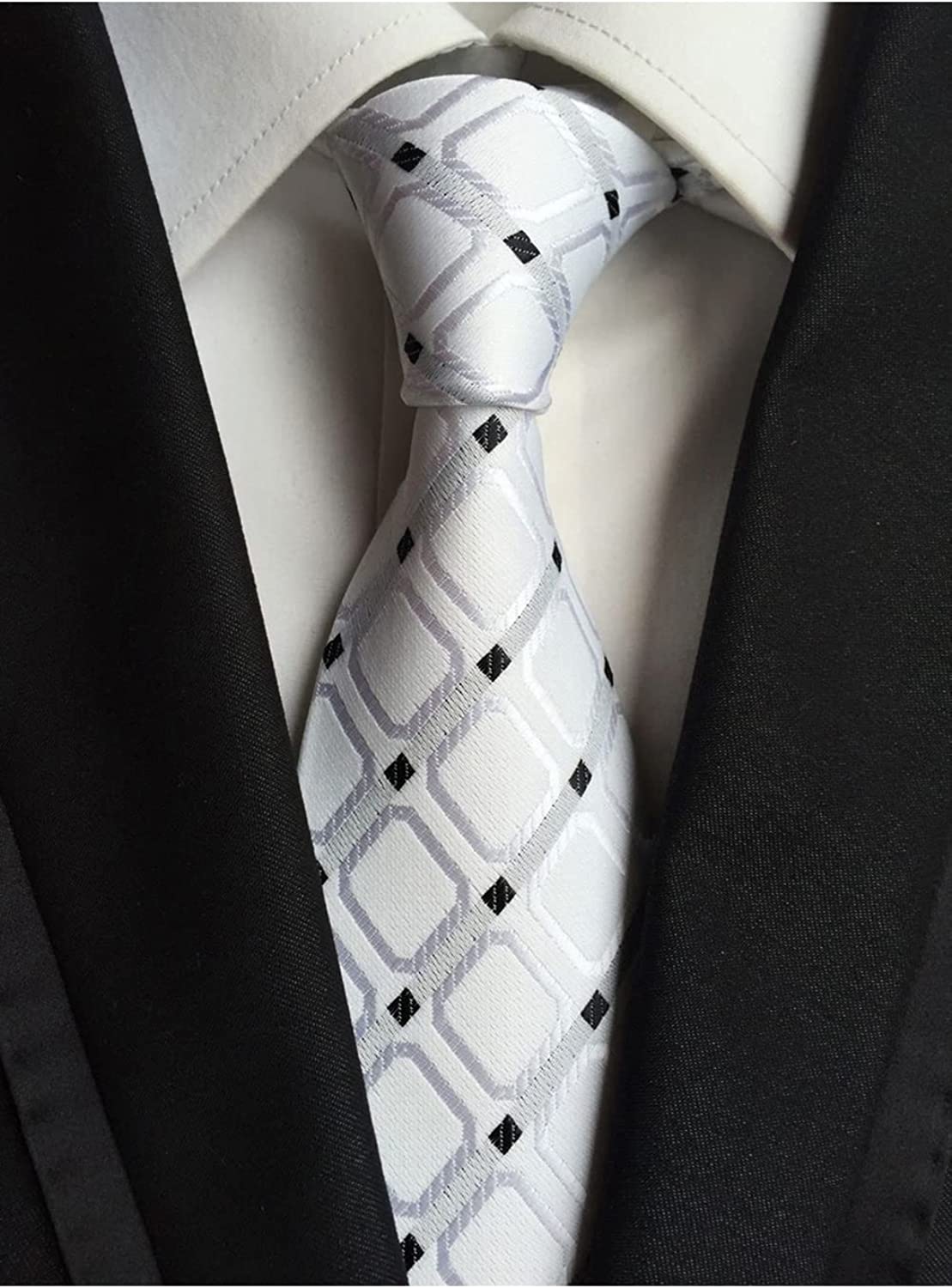 • 【Silk Stripe Plaid Men Neck Tie】white check jacquard design necktie patterns are woven directly into the necktie during production, not printed or dyed on top of the fabric, granting sharper contrast and more vivid colors. The high-density silk and thick interlining ensure strong, sturdy, tough, long-lasting knots. Which is resistant to both stains and fray.