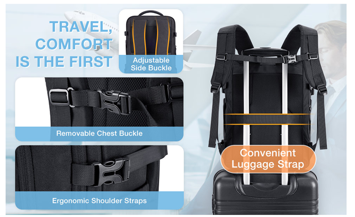 UPGRADE ITERATION: Expandable design added for the first time, with 25L-40L of travel backpack storage space to change as you wish, the maximum capacity can store 3-5 days of clothes. Of course, it does not stop there, the backpack also has a built-in elastic band, which can be compressed clothing, prevent clothes from falling, maximize the use of the backpack storage space, saving an additional 10% of capacity.