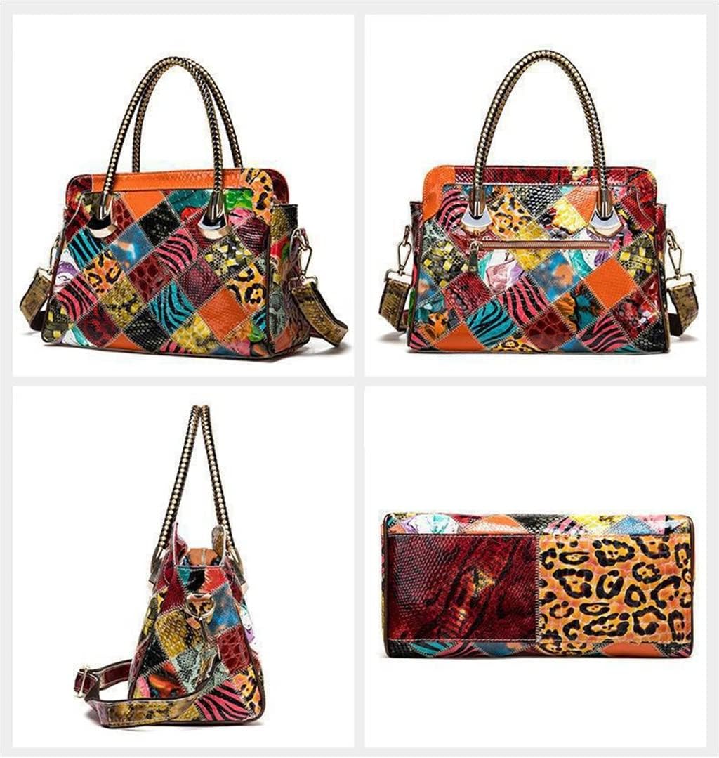SHZBCDN Leather Bags Handbags Women's Printed Painted Tote Bags Women's Shoulder Bags (Color : A, Size