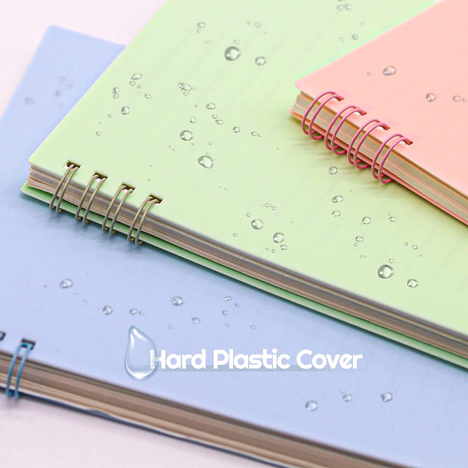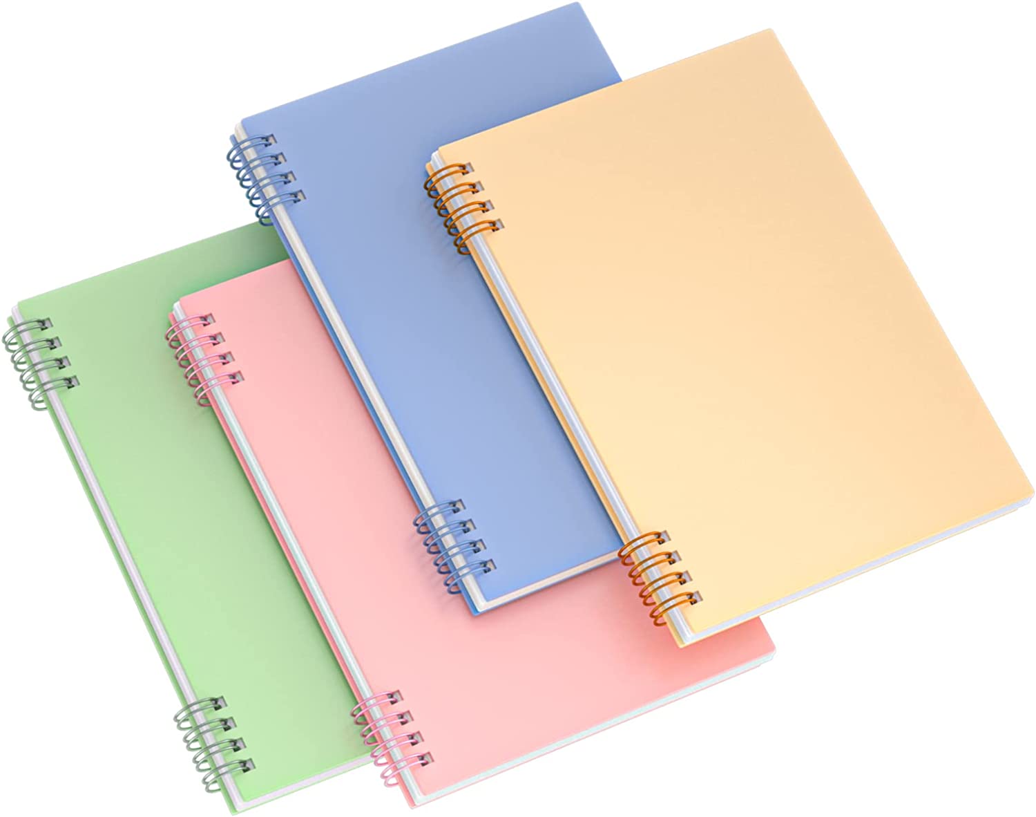 MuiAng Spiral Notebook Wide Ruled A5 Notebooks with Thick Plastic Hardcover 8.3 x 5.9 Inch, Pink, Blue, Green, Yellow Color, 80 Sheets Wide Ruled 160 Pages, 4-Pack