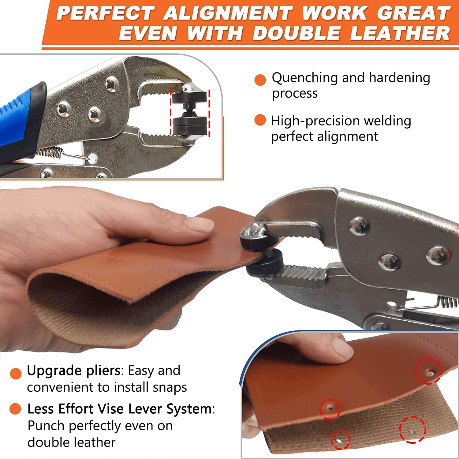 [Precise Welding, Die Holder Correct Alignment]Highly calibrated and adjustable parts to ensure the jaws are accurately and fully closed, the plier system gives you better leverage to finish snaps installation.