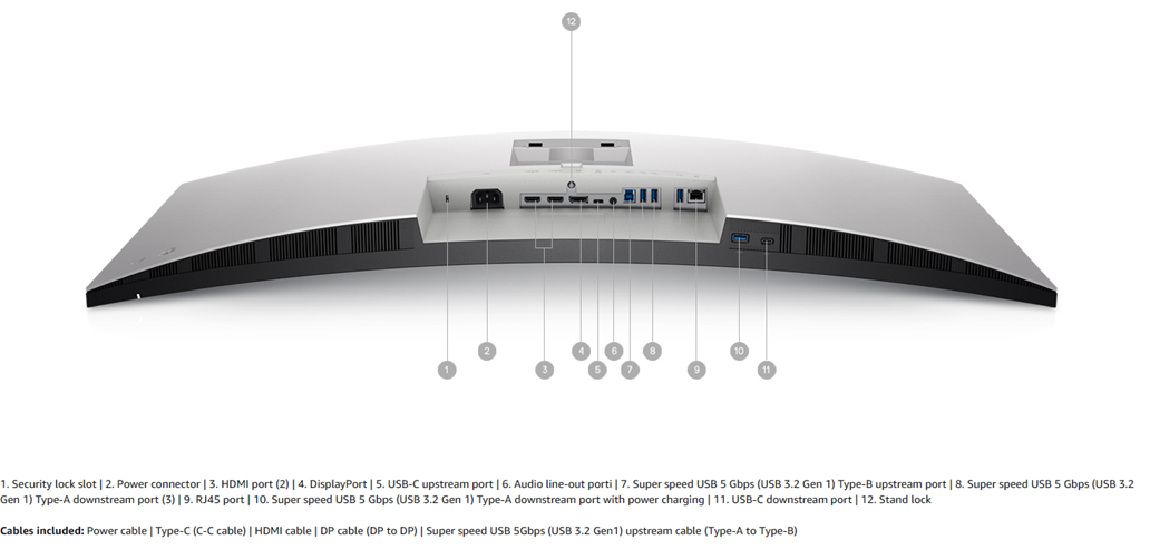 • WQHD+ 3840 x 1600 (DisplayPort: 60 Hz, HDMI: 60 Hz, USB-C: 60 Hz)