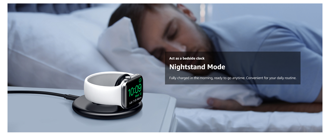 - ?️【Support Nightstand Mode】?️ This made for Apple watch charger USB C allows you to use your Apple watch as a clock and check the time while charging. Place it next to your bed to as a convenient reminder to charge your watch overnight, ensuring it's fully charged in the morning for the day ahead.
