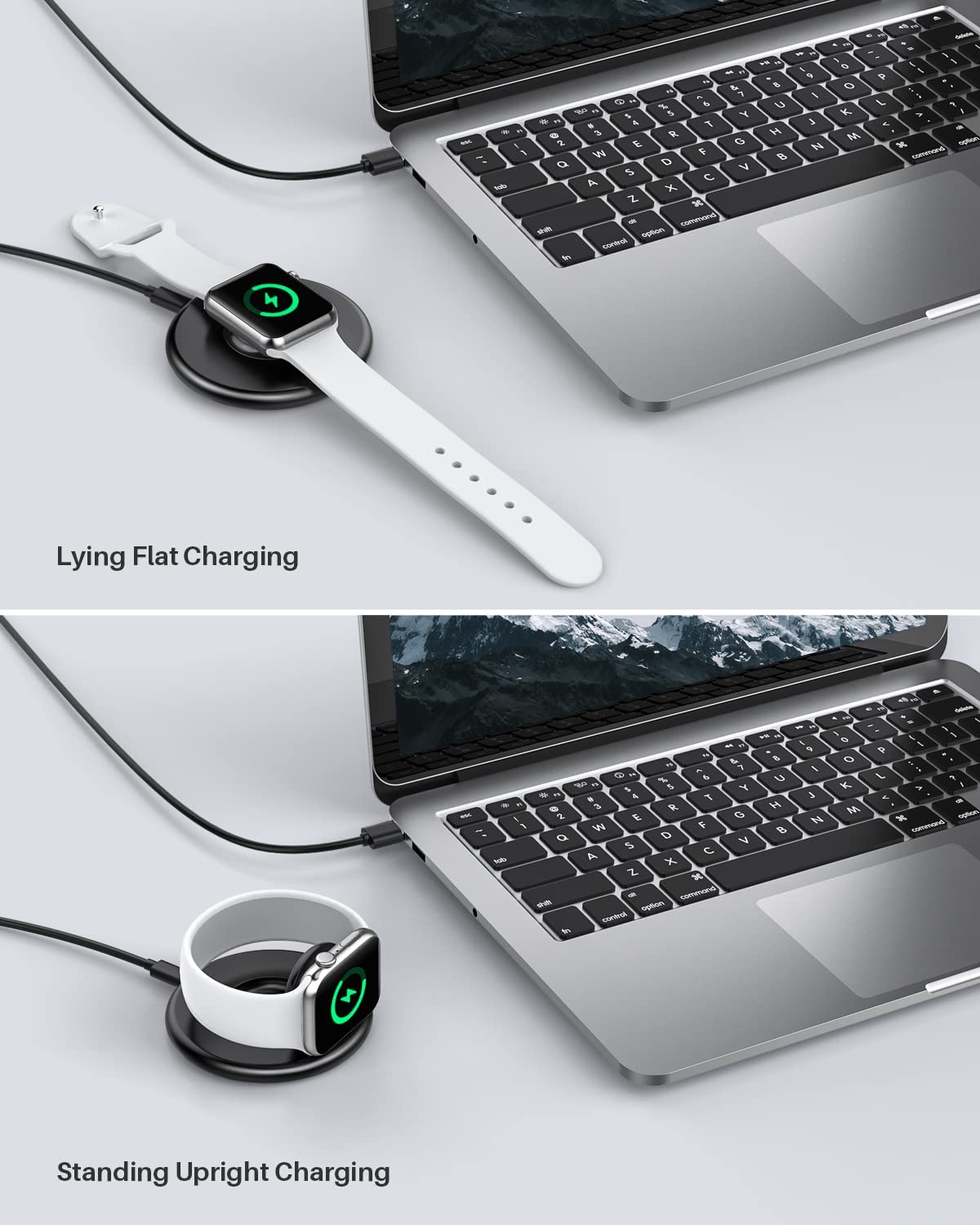 - ⚡【Better Than Laying Flat To Charge】⚡ Offering dual function of upright or flat charging, this compatible with iPhone watch charger features a built-in charger, no assembly required. Simply pop up the charger and place your watch to start charging instantly. No more worries about your iWatch sliding off any surface during charging.
