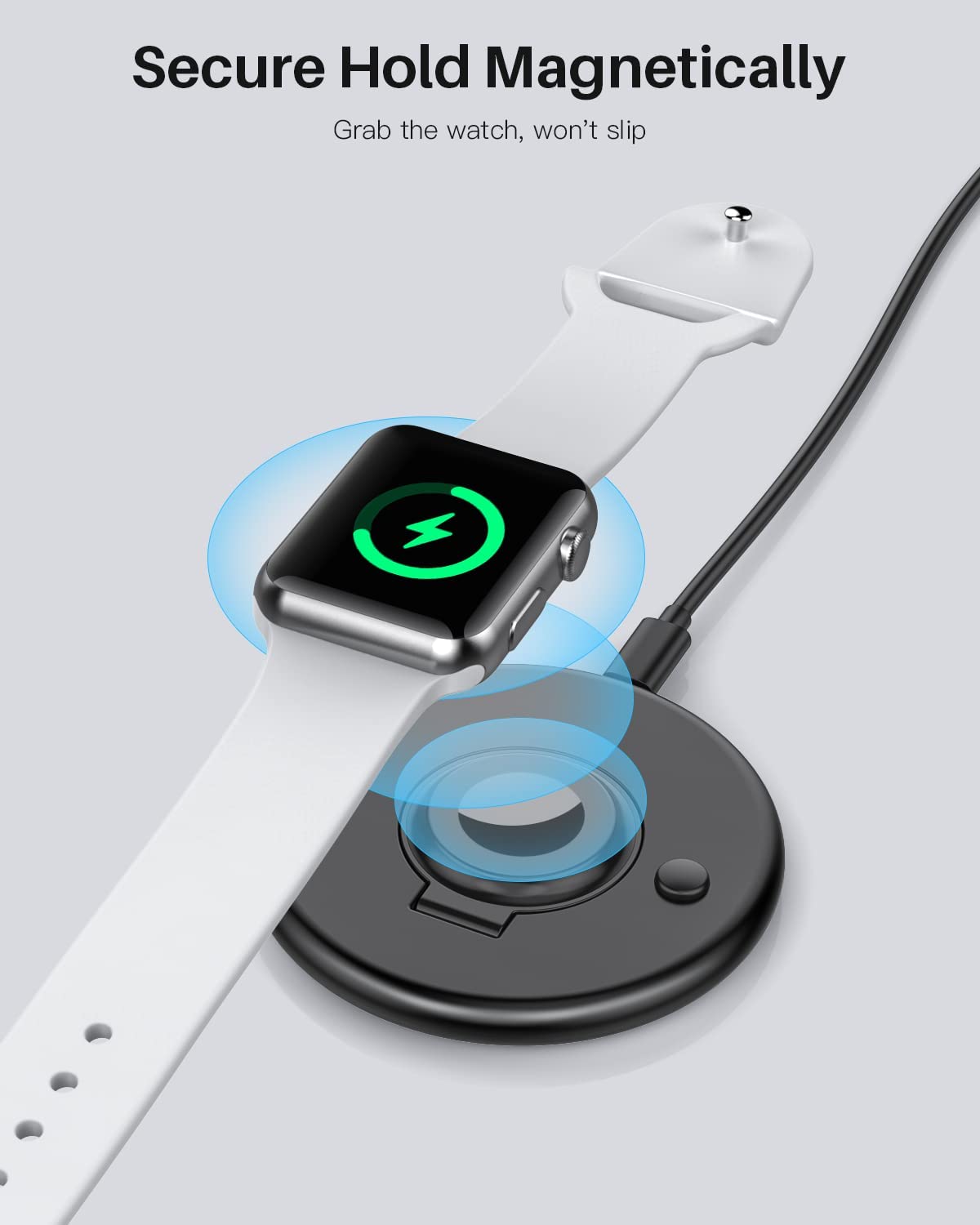 - ?【Foldable & Portable】? Weighting only 50g, with a diameter of 3.5in and thickness of 0.5in (fully collapsed), this designed for Apple watch travel charger can be folded flat for easy stored in your bag with other charging accessories. Its compact size allows fitting in a purse, chest bag, or even a pocket, makes it an ideal travel partner when you're on the go.