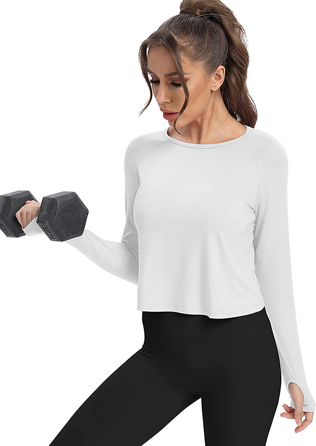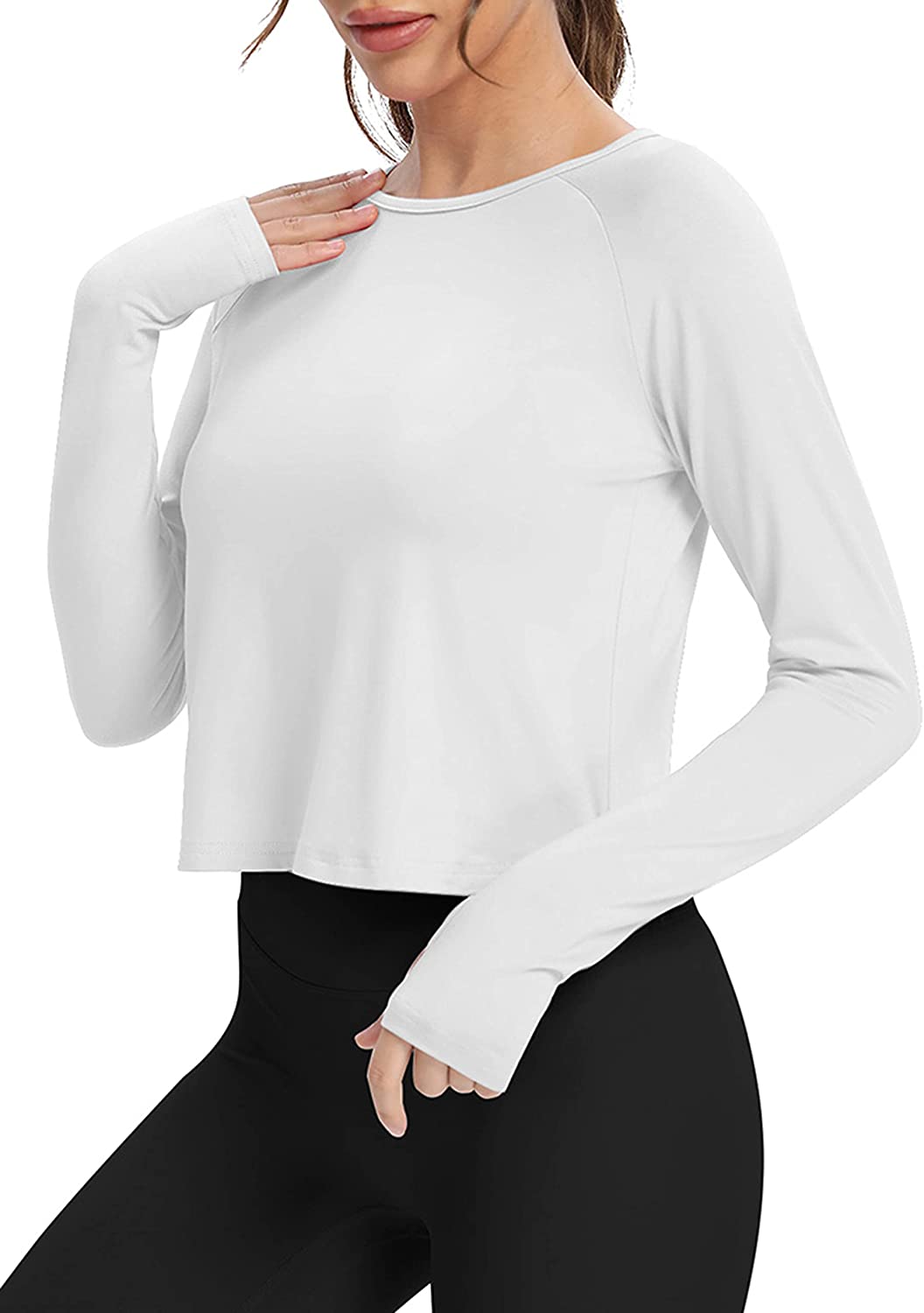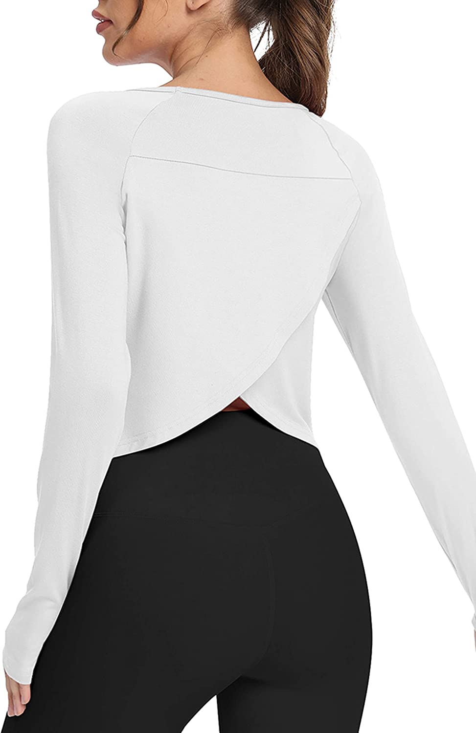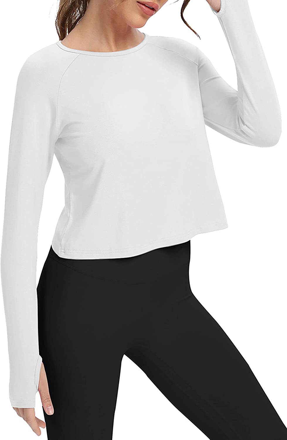 Bestisun Long Sleeve Cropped Tops Athletic Workout Athletic Yoga Gym Crop Tops for Women