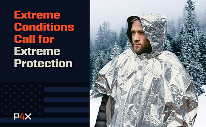 • 2X THICKER THAN THE AVERAGE EMERGENCY BLANKET – At Prepared4X, quality matters and we created our emergency poncho using durable, NASA-engineered, tear-resistant, and incredibly tough mylar, so you can retain 90% of body heat, keeping you warm and safe.