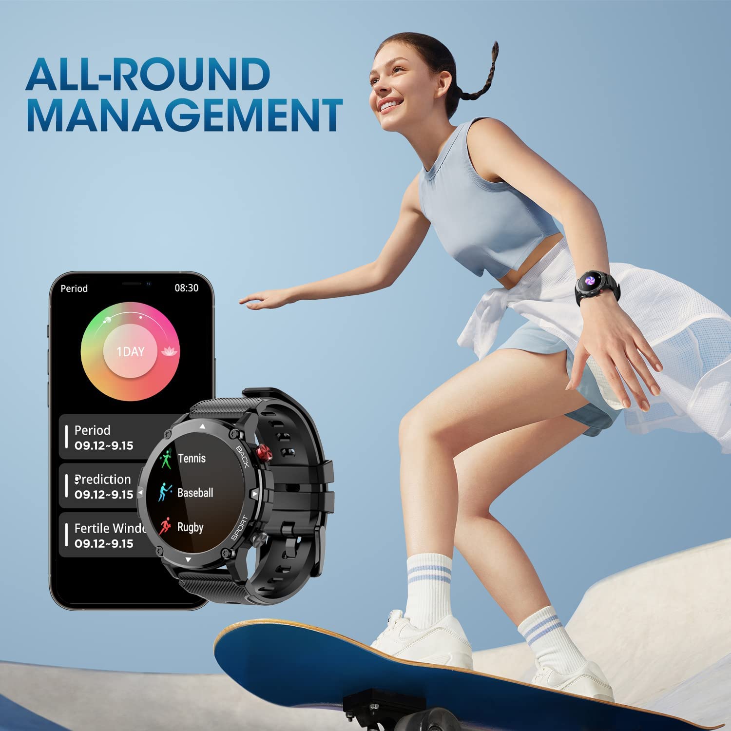 - ⌚【ALL-ROUND MANAGEMENT】- The smart watch can provide saturation measurement, sleep monitoring, as well as other functions to achieve total management from your wrist. All data can be synchronized to your phone for analysis and to help you create a scheduled routine to meet your goals.