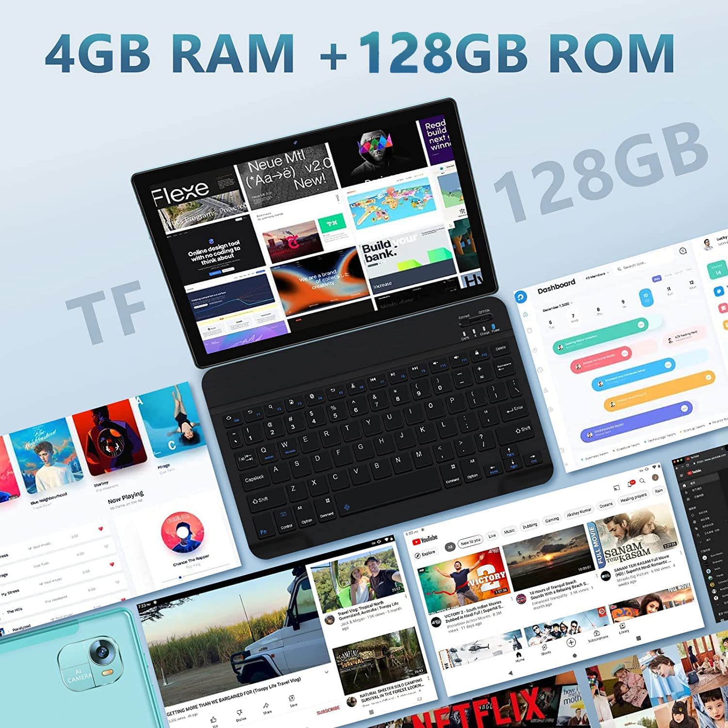 - 【High Performance & storage】 Facetel Q10 Tablet has a built-in 4GB running memory,enjoy smooth multitasking and switching. between applications. 128GB storage capacity, includes a micro SD card slot, (MicroSD can be expanded to 128GB), allows you to store all your files,meet your daily entertainment and work needs.