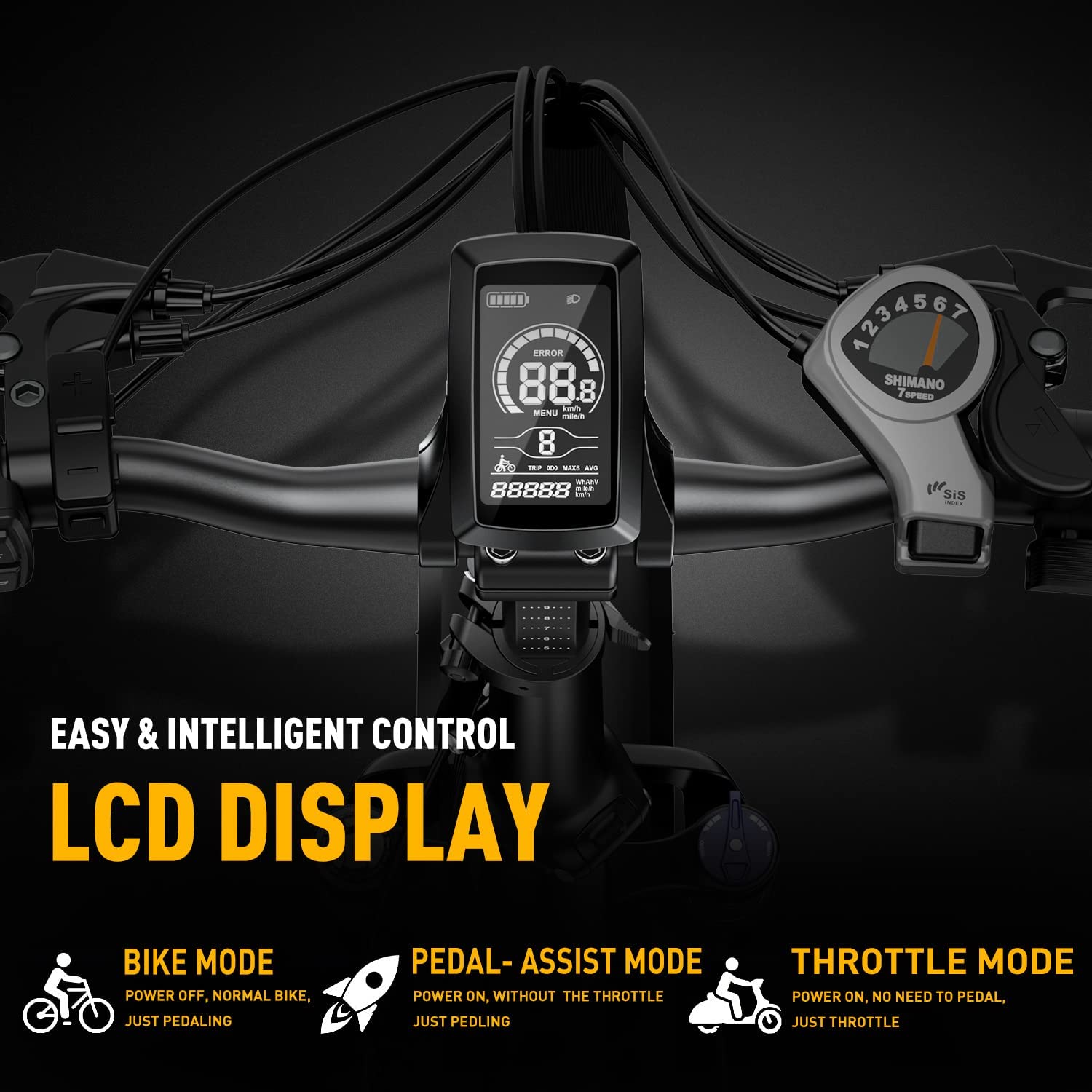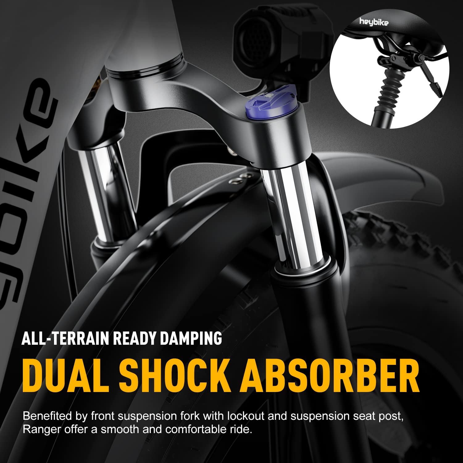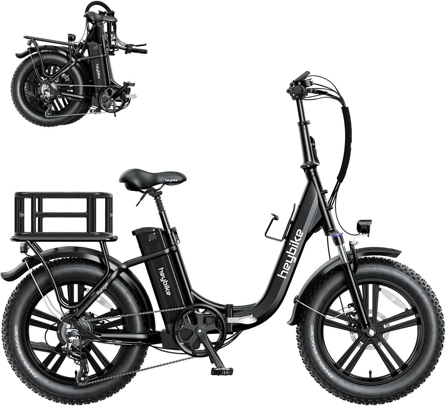 . Make sure this fits by entering your model number.  48 MILES RANGE & 25MPH TOP SPEED-- Ranger is equipped with a larger capacity 48V 15Ah battery and a 500w brushless geared motor to ensure long life and excellent performance.  4’ FAT TIRES & SHOCK ABSORBER-- The newly upgraded 4’ wide puncture-resistant fat tires have better performance and a cooler appearance. With excellent suspension front fork and Seat Post. In addition to city roads, Heybike Ranger can ride on snow, beaches, rugged mountain roads, etc.  FOLDABLE & STEP-THRU FARME --It only takes two steps to fold the bike and put it in the trunk. With its adjustable stem, seat, and step-thru frame,it allows different sized riders to use the bike easily and improves overall comfort when riding on rough terrain.  EXCELLENT RIDING PERFORMANCE-- Customize your ride performance with 3 riding modes and Shimano 7-speed. The perfect dual disc brakes and lighting system fully protect your safety.  READY TO GO& MORE STORAGE SPACE-- Heybike Ranger has more pre-assembly. The bottle mounts and the position of the front basket and rear rack have been installed, you can easily add accessories to your bike. Heybike Ranger is your best choice for any situation.  Please keep the original e-bike package for a while in case you need to return it.  Please contact Heybike support team if you want to return the bike and do not return the bike by yourself to prevent package loss.