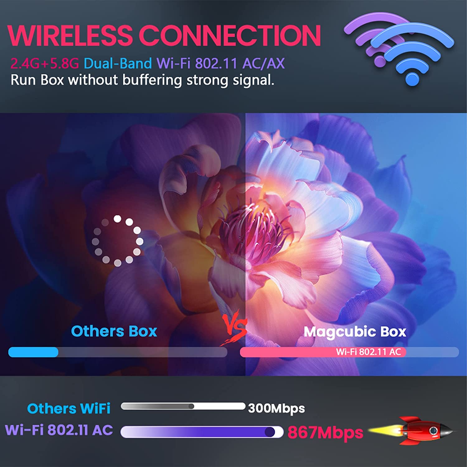 - 2*USB 2.0: Magcubic Android 12.0 TV Box has two USB 2.0 ports, and can be connected with mouse and keyboard for easy operation. Infrared remote control makes you enjoy the wonderful life brought by wireless connection.
