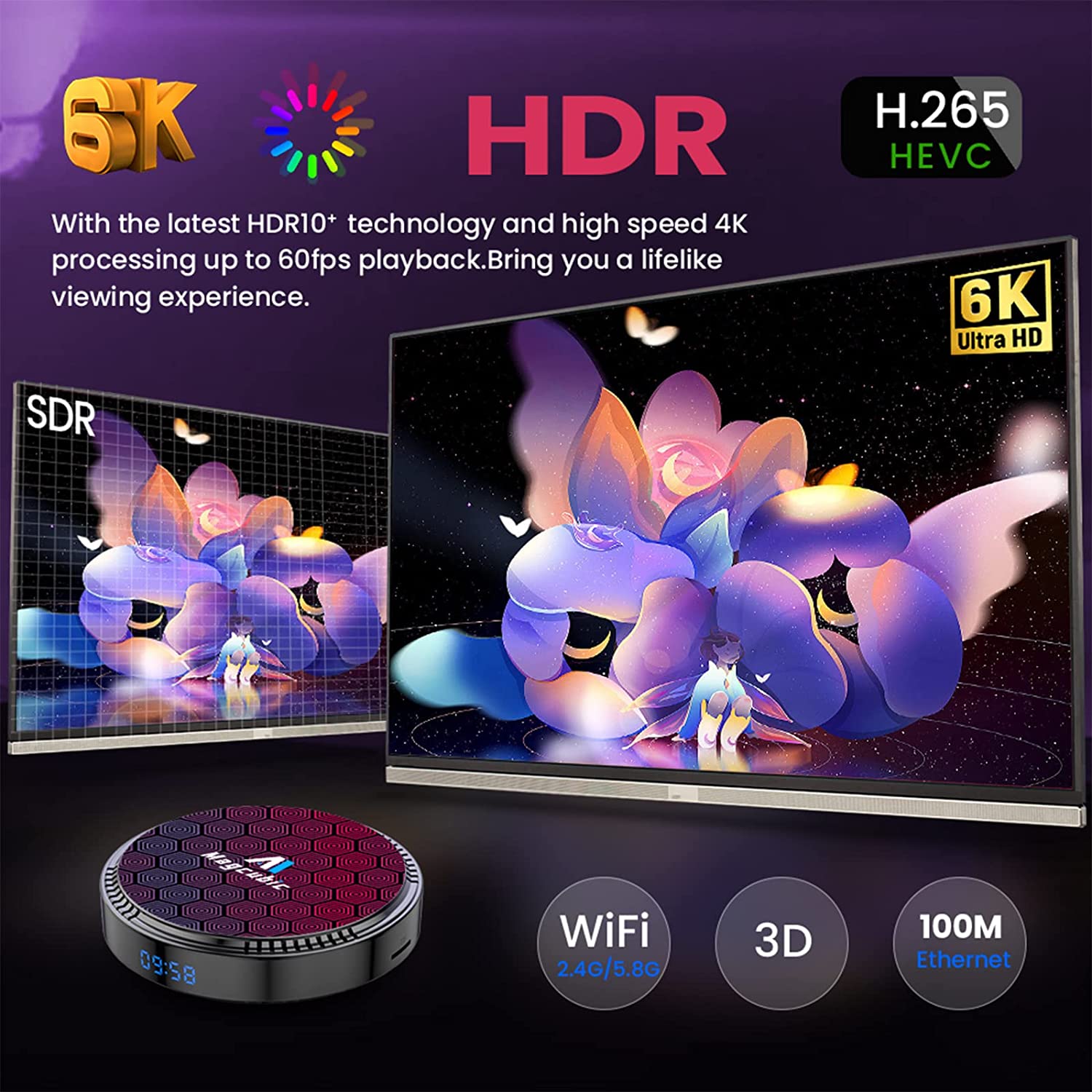 - Note: Please confirm whether your TV supports 4K/ 6K resolution or not, meanwhile, if the video you watch supports 4K/ 6K resolution, then the TV box also supports 4K/ 6K. If you want to enjoy 3D movies with your home theater, you need to prepare a 3D video compatible TV format and pair a pair of 3D glasses at the same time.