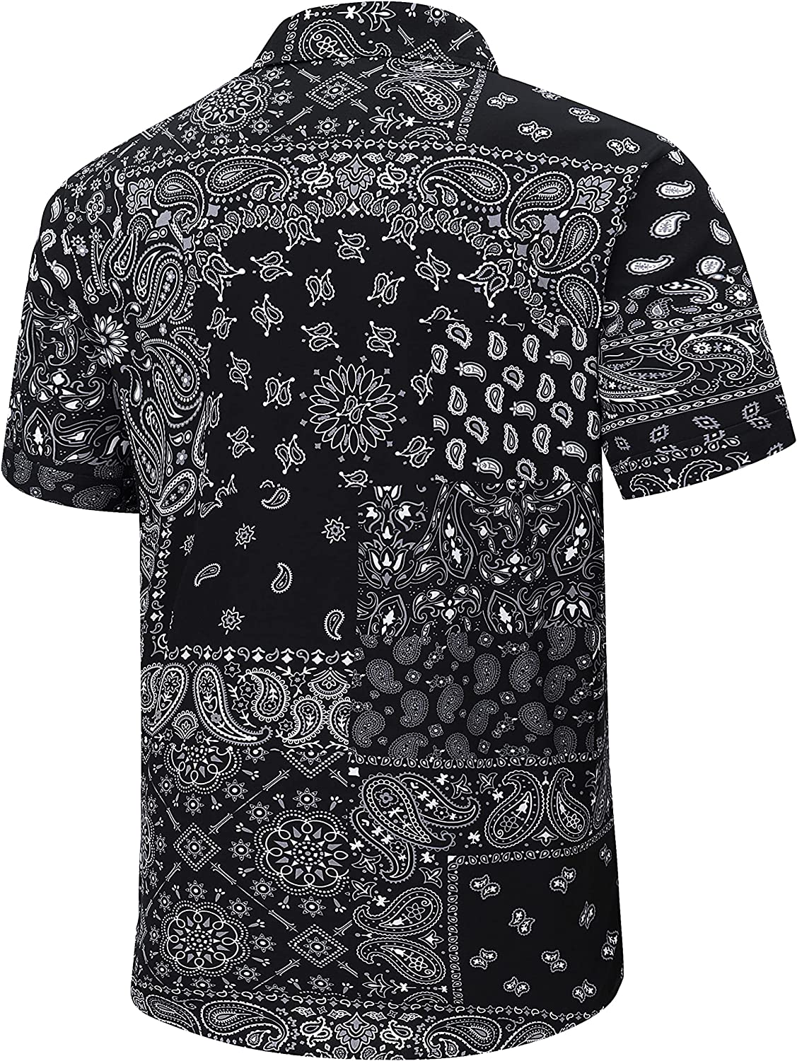 SheLucki Hawaiian Shirt for Men, Unisex Summer Beach Casual Short Sleeve Button Down Shirts, Printed Palmshadow Clothing
