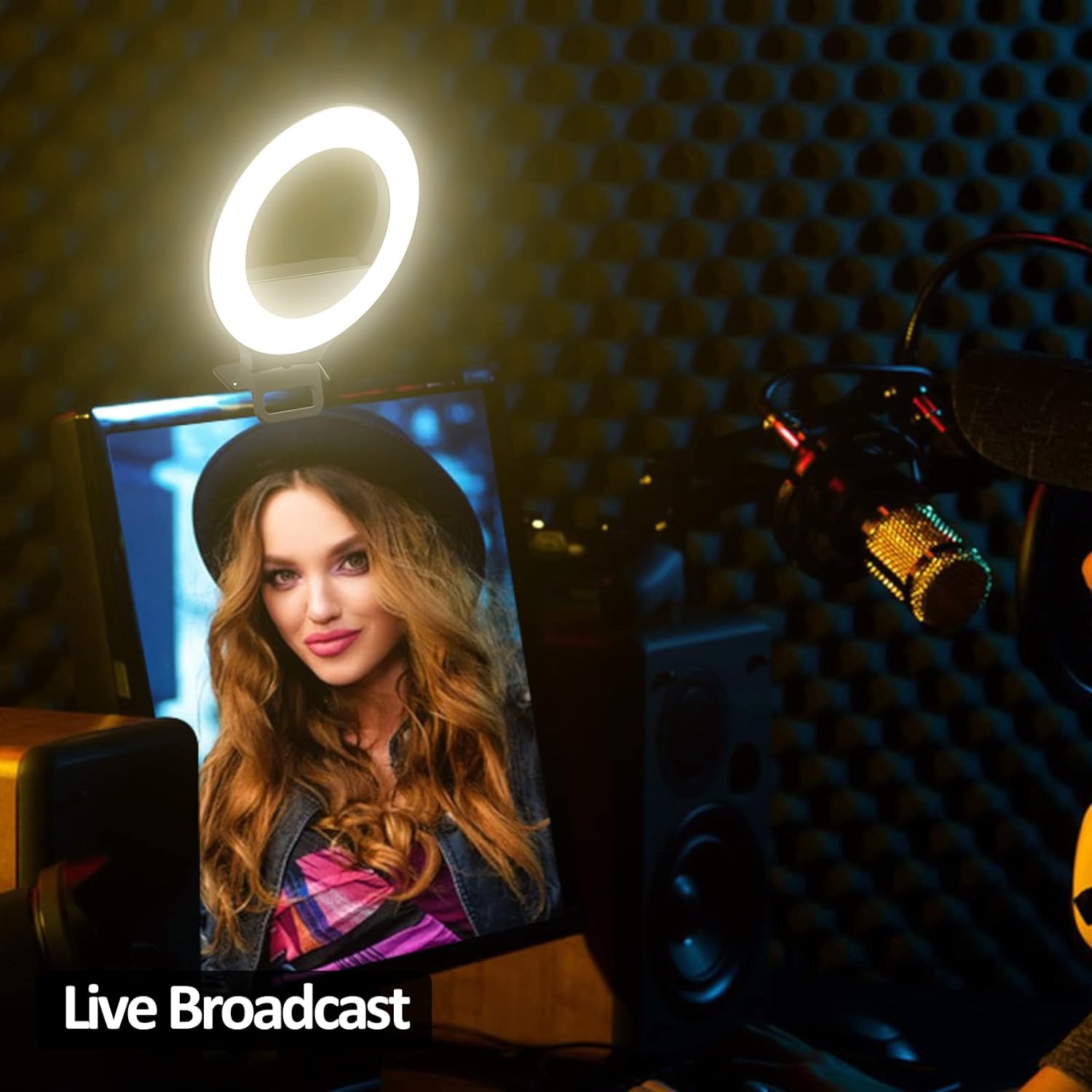 Clip on Ring Light - Ring Light for Laptop/Computer with 10 Brightness Levels, 3 Light Modes - Perfect for Video Conferencing, Live Streaming, Compatible with Laptop, Computer, Tablet