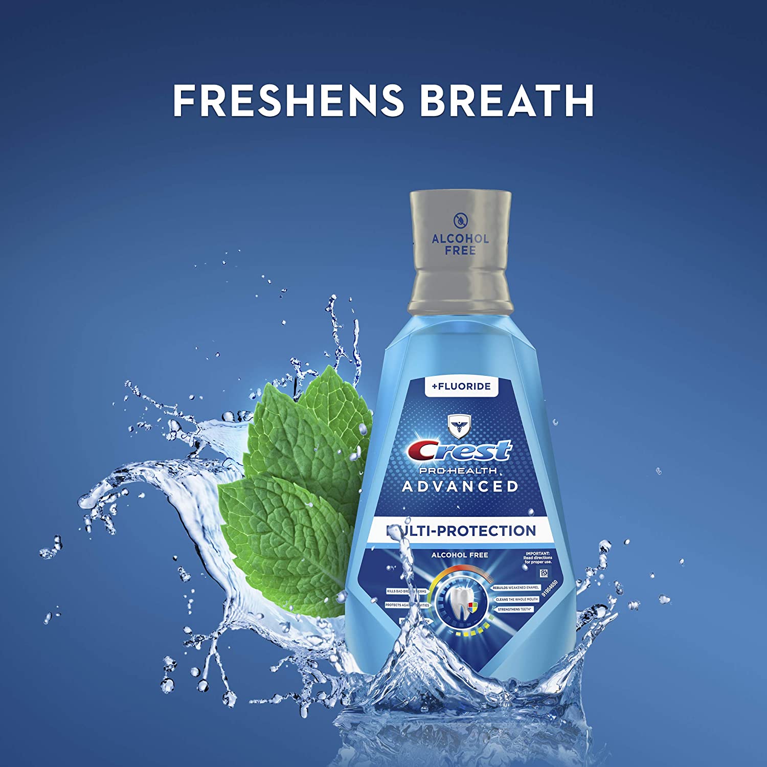 Crest Pro-Health Advanced Multi-Protection Mouthwash with Fluoride helps you have stronger teeth* for a healthier mouth. It kills bad breath germs, helps prevent cavities, strengthens enamel, cleans teeth and gums, and freshens breath. *when added to a good oral care routine by strengthening enamel