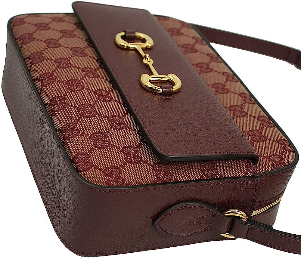 Gucci 645454 9Y9NG 9865 Crossbody Shoulder Bag, Horsebit 1955 GG Canvas Burgundy, burgandy