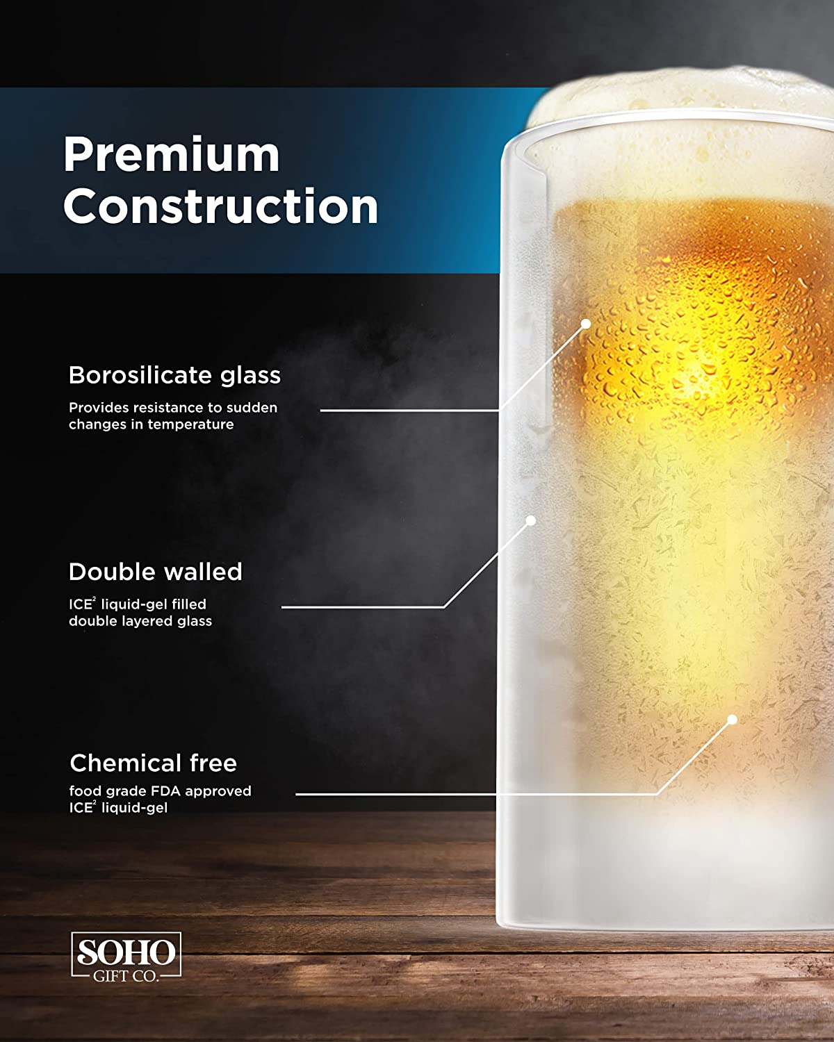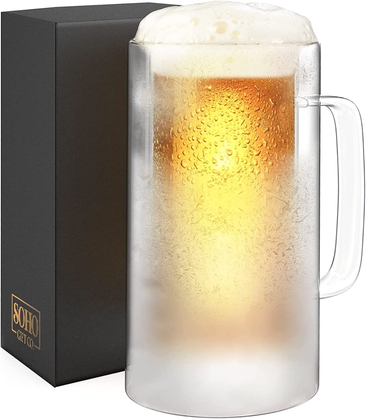 The double walled glass is made of ultra durable borosilicate glass with a 16-ounce capacity, enough for a pint of his favorite beer!
