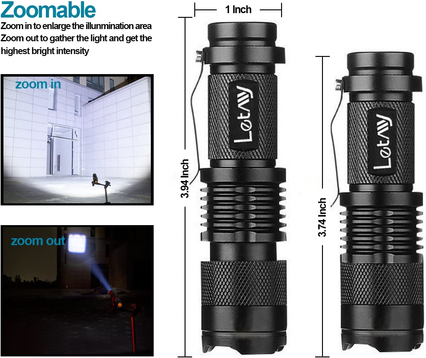 LETMY Tactical Flashlight, Super Bright LED Mini Flashlights with Belt Clip, Zoomable, 3 Modes, Waterproof - Best EDC Flashlight for Gift, Hiking, Camping, Hurricane & Power Outage (2 Pack)