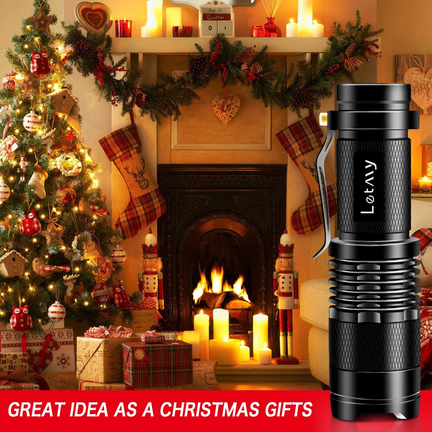 • 【Easy to Carry】only 3.6 inches length, this mini tactical flashlight fits in the palm of your hand, portable to carry with a metal clip. Our flashlights is convenient to slip into your pocket or clip on your belt or backpack. Perfect gift for kids, men...!