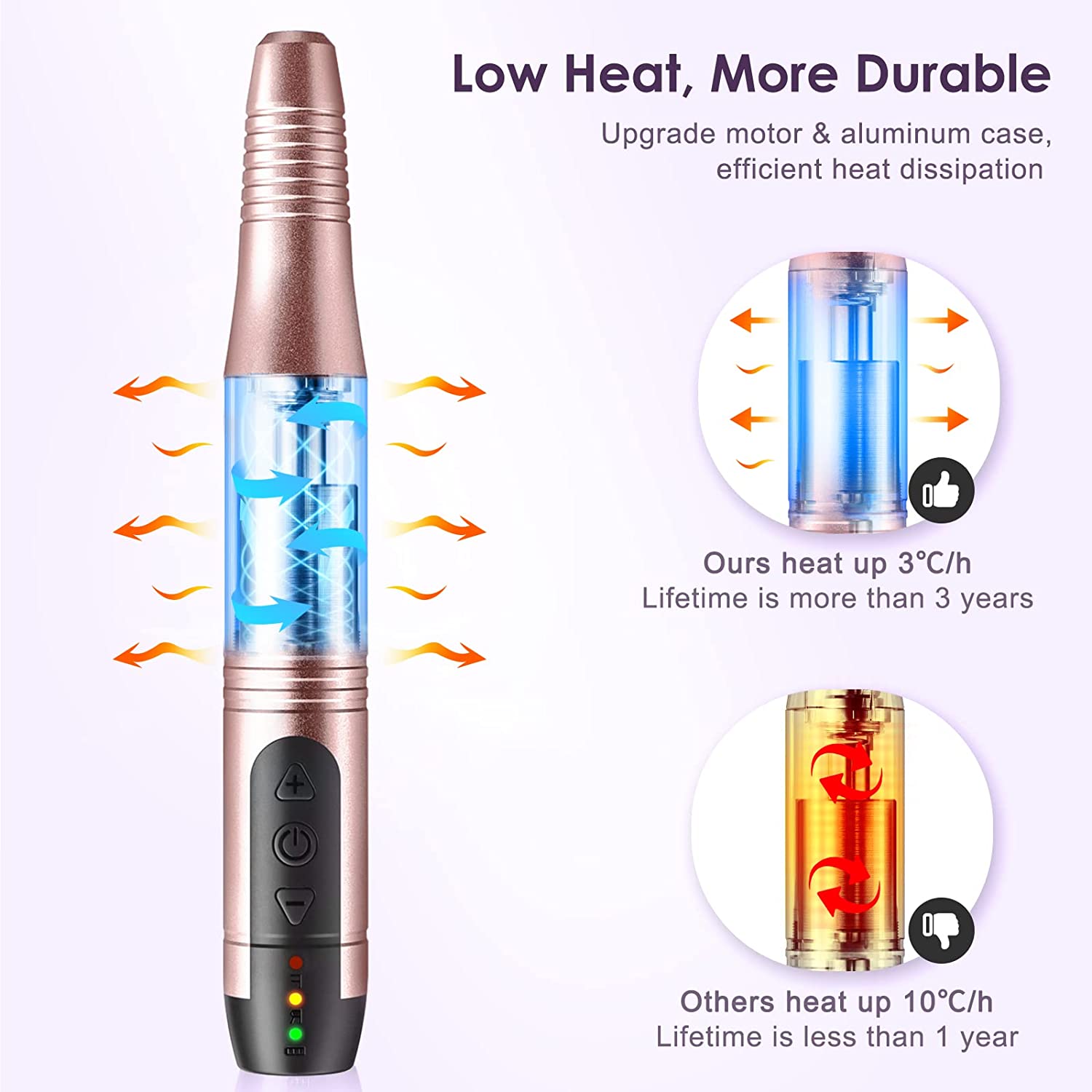 Quiet, Low Heat and 3 Years More Durable: This efile is built to last, with an upgraded motor and overload protection mechanism that prevents overheating and extends its service life. Plus, its spring structure makes it quiet and low-vibration for a more pleasant experience.