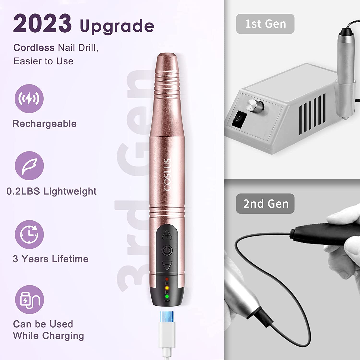 COSLUS Cordless Nail Drill Electric File: Professional for Acrylic Gel Dip Powder Nails Portable Nail Drill Machine Kit for Manicure Pedicure Nail Dremel Set with Everything Rechargeable Lightweight