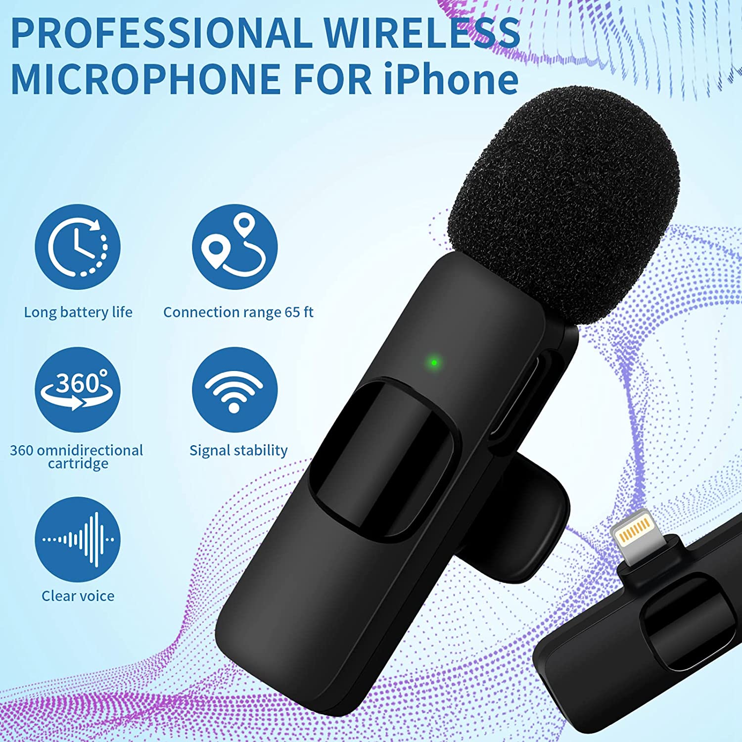 Wireless Microphone for iPhone iPad iPod, Professional Wireless Clip-on Mic, Portable Wireless Lavalier Microphone, Plug-Play Microphone for Video Recording, TikTok, Facebook, YouTube,Live Stream