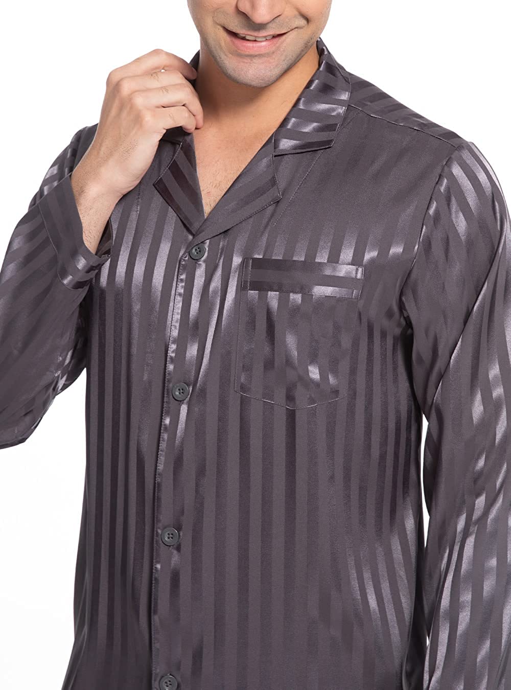 Pajamas Top: Lapel collar, long sleeve with front chest pocket, providing a classic look for you.