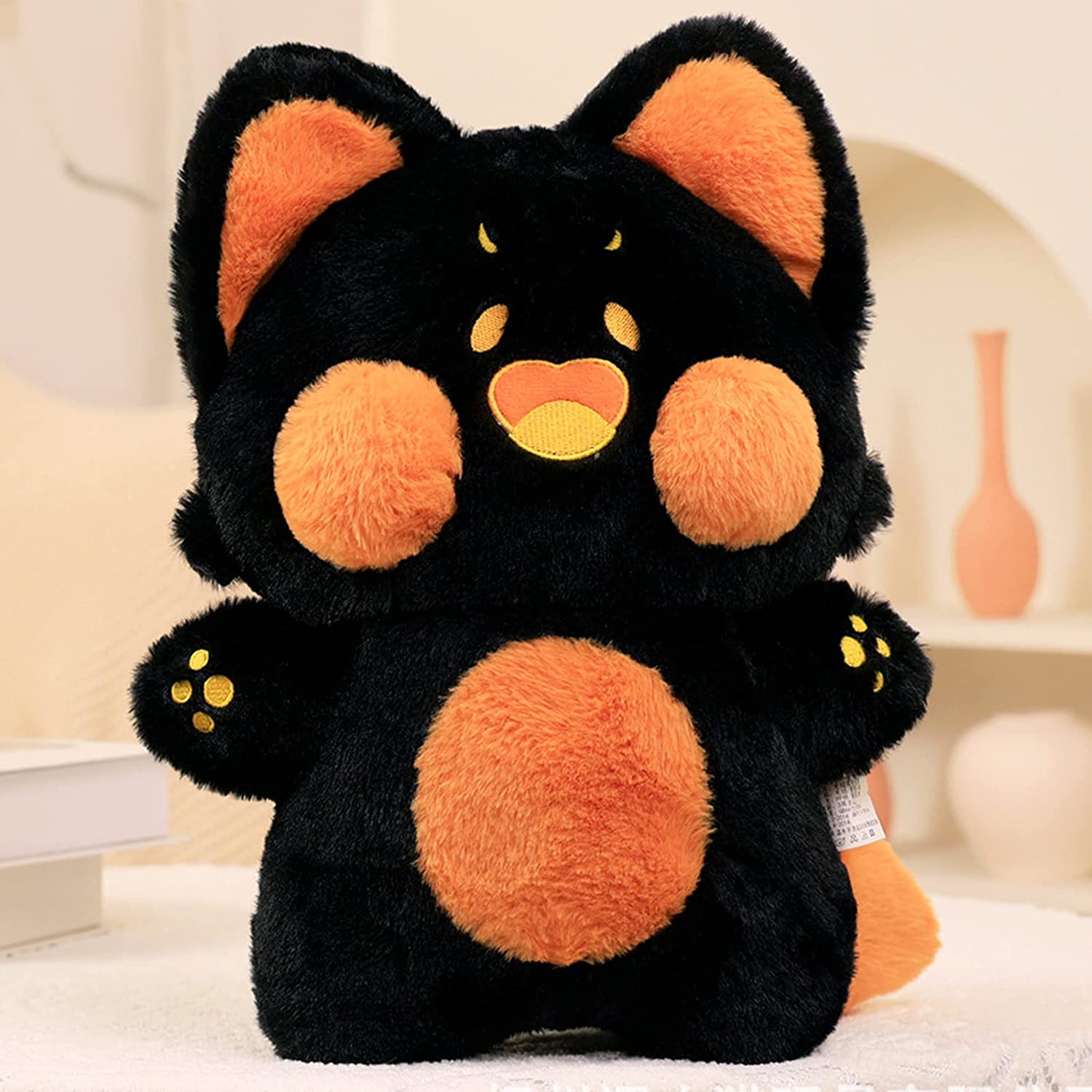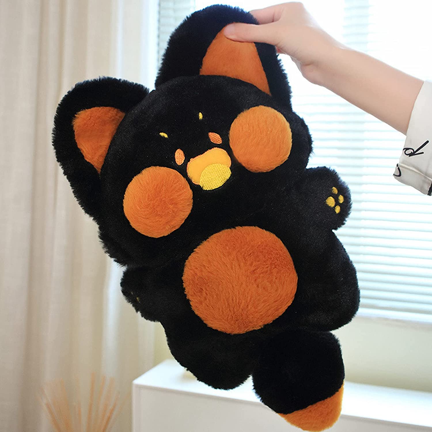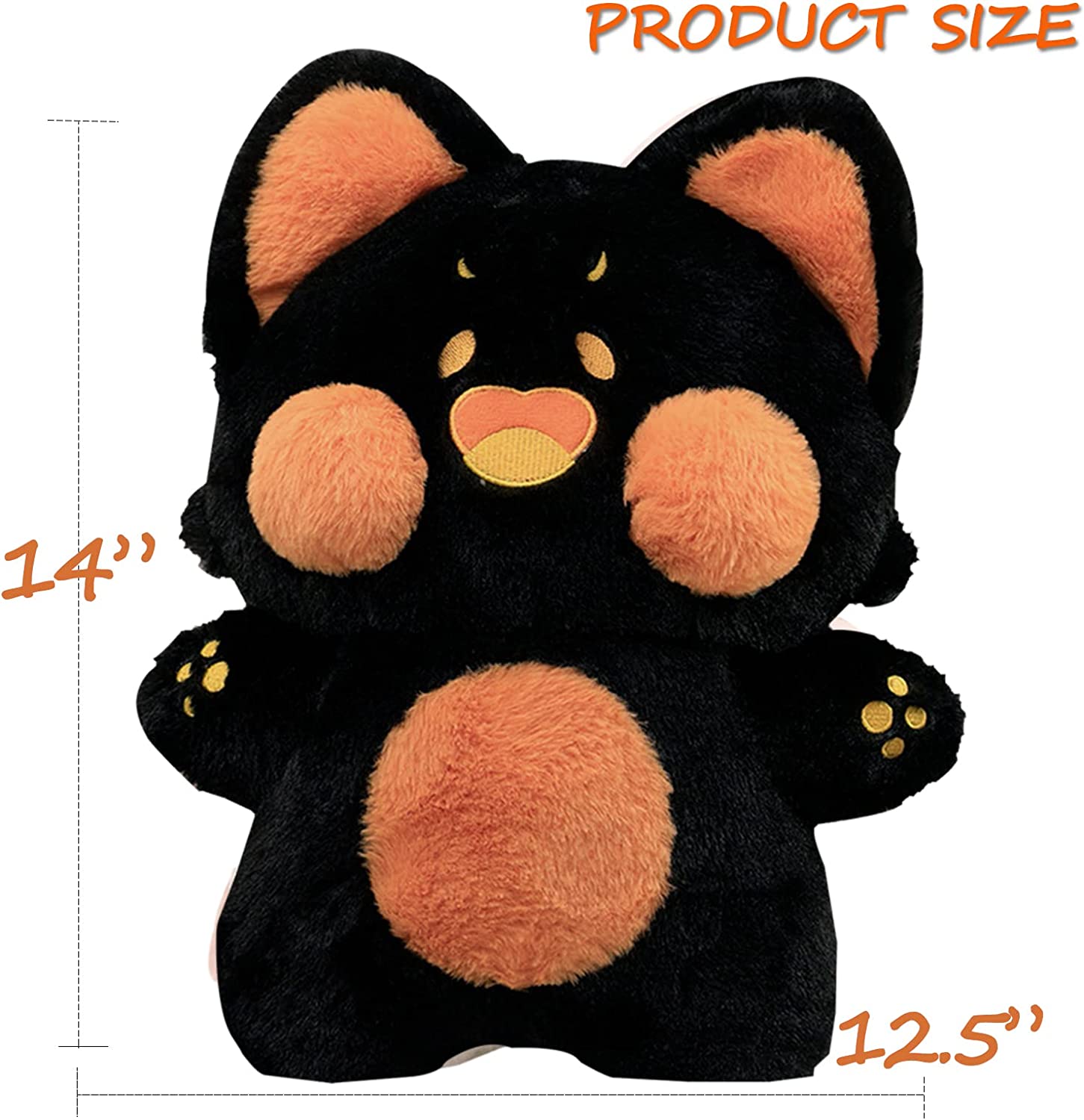 PERUKOYO Cat Plush Toy Cat Stuffed Animals Pillow Kawaii Plushie, Soft Plush Doll Black Cat Plushie Cat Pillow for Boys Girls