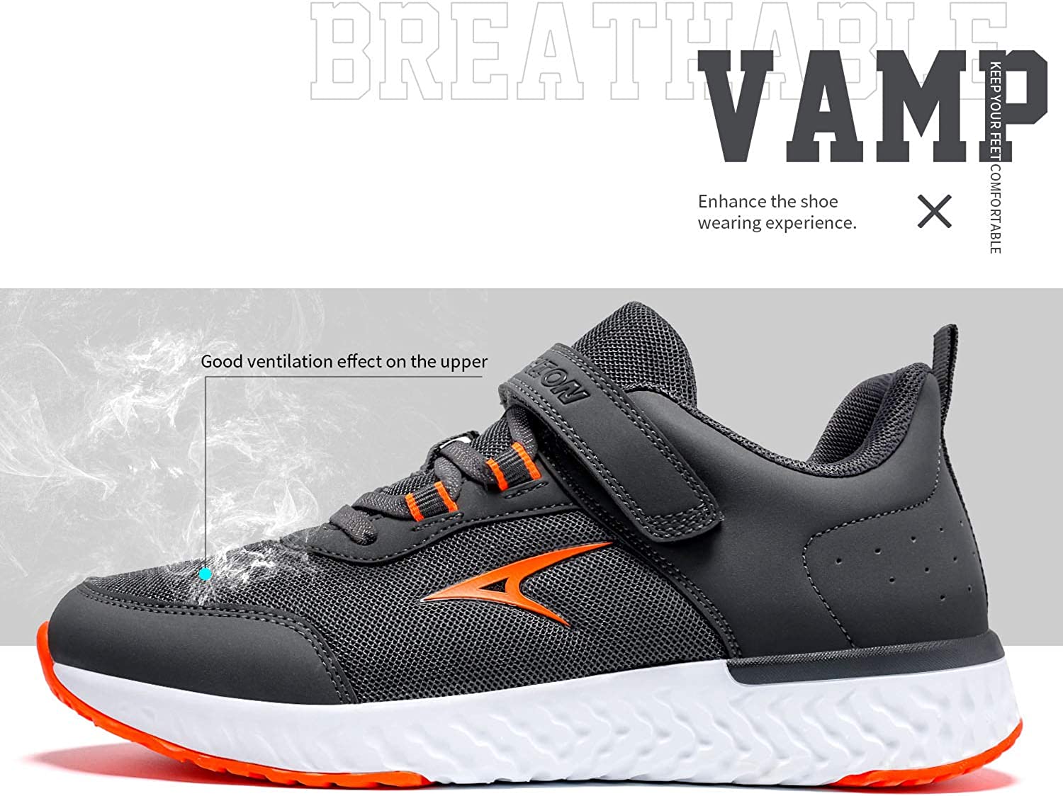 【Rubber Midsole】- Boy athletic shoes have great of anti-slip, not easy to slip. Anti-collision shoes head protecting feet hurt from hard object.