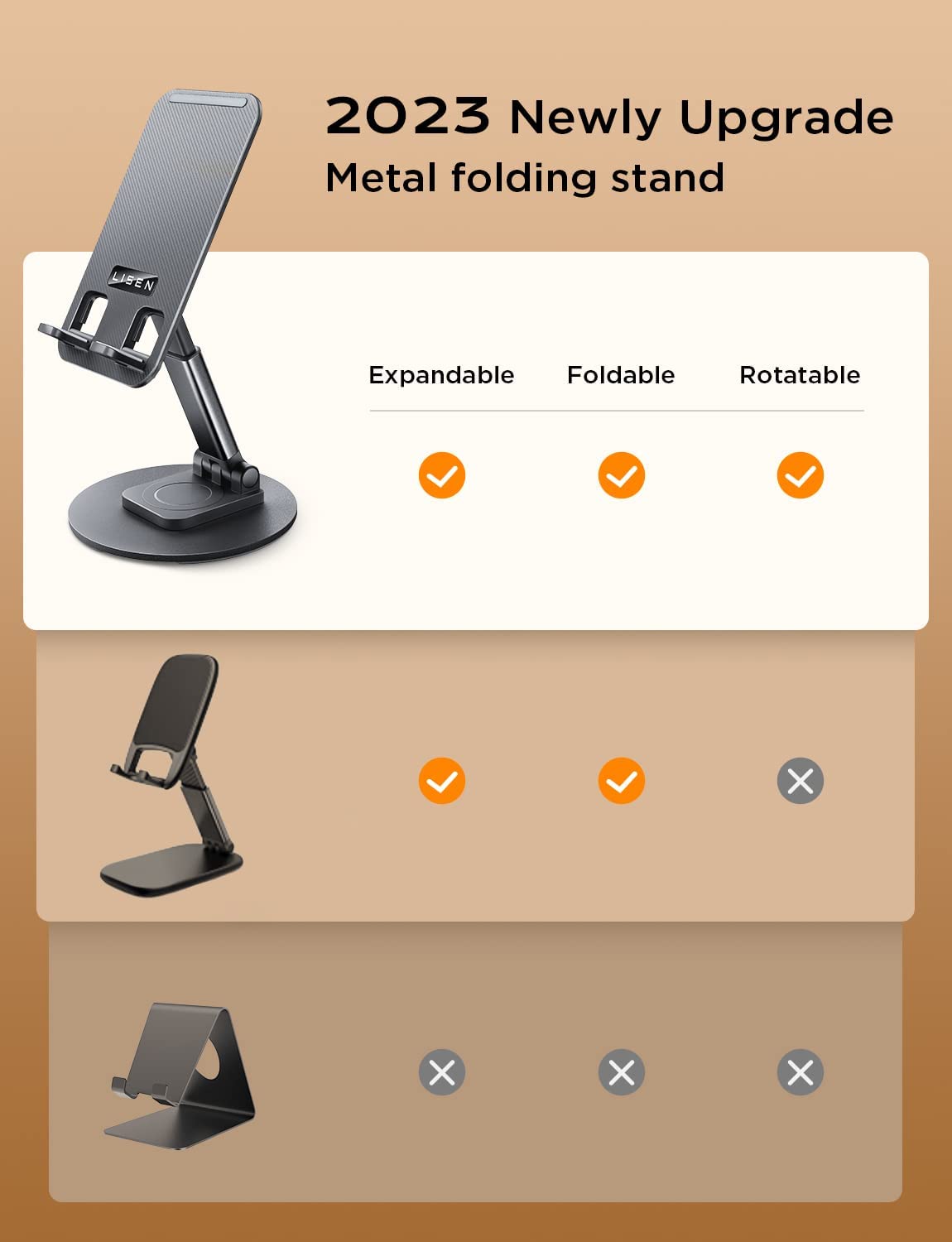 LISEN Rotatable Cell Phone Stand Height Adjustable iPhone Holder for Desk Portable Cellphone Stand Thick Case Friendly Compatible with All Mobile Phone iPhone 13 14 Pro Max 4-10'' Desk Accessories