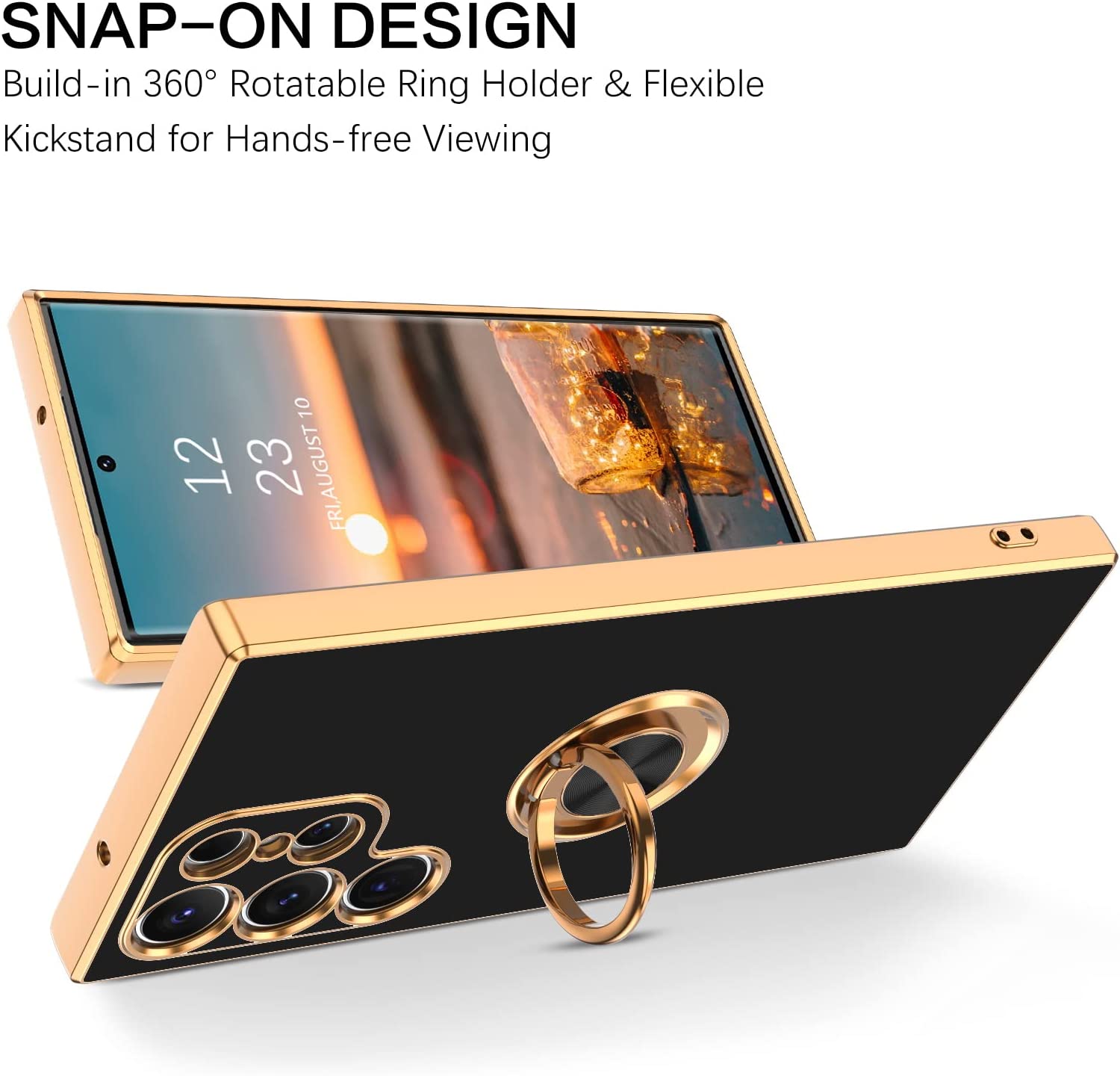 ★【Functional Rotatable Ring & Kickstand】This s23 ultra phone case comes with a convenient adjustable sturdy ring holder which can rotate 360 degree for easy safe carrying. Built-in kickstand gives you the convenience to watch videos and movies hands-free with desired comfort and stability.