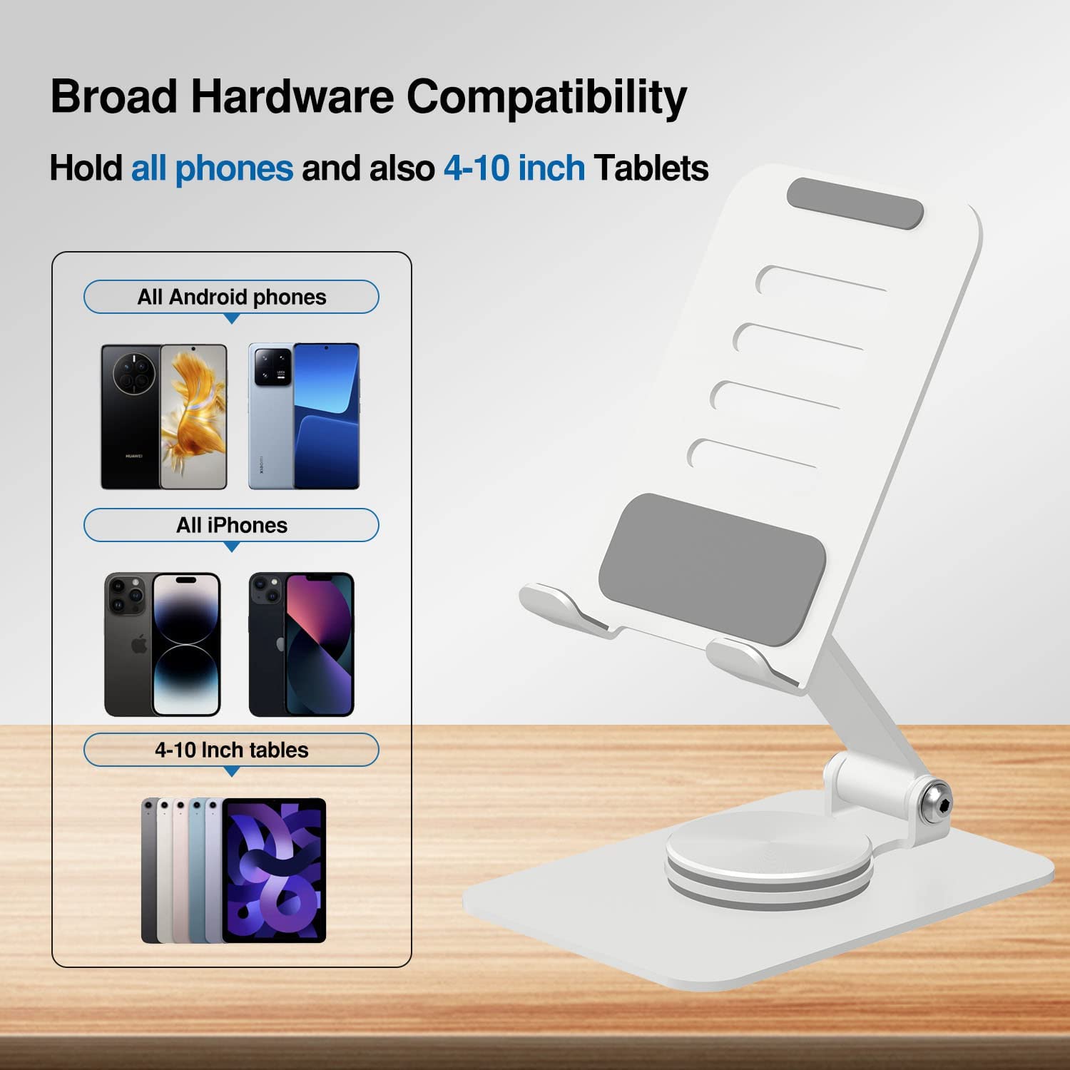 • [Easy to Charge and Carry]: This mobile phone stand is designed with a charging cut-out on the bottom which can be used to work while charging. This 360 rotating phone stand folds easily to a nice compact size for storage or transport